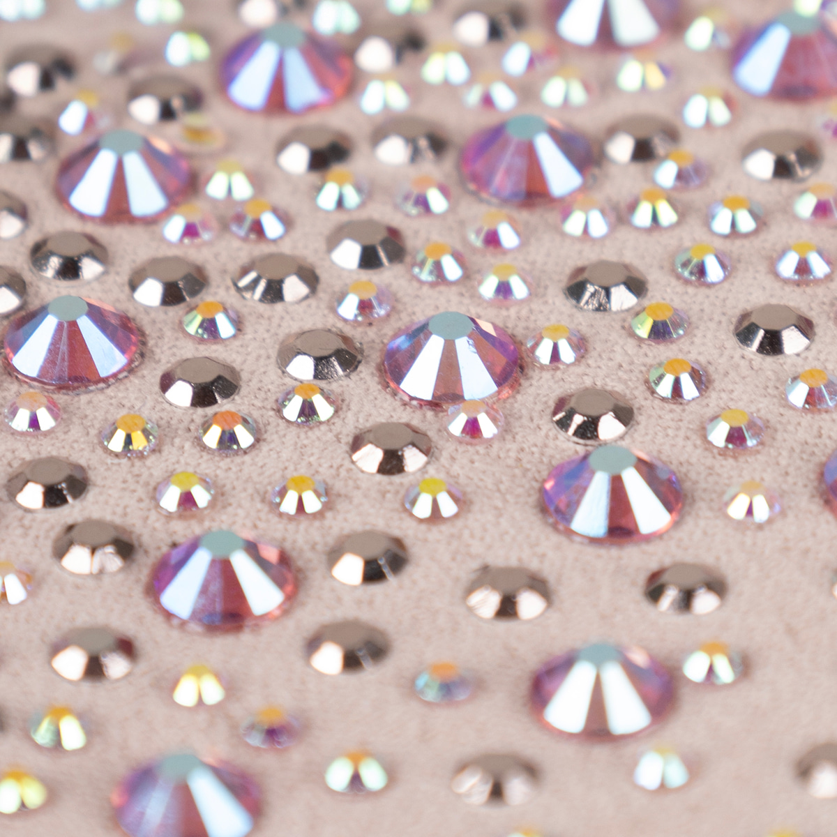 Le scarpe con applicazioni di strass o borchie sono calzature decorate con piccoli cristalli artificiali come vetro acrilico o resina che imitano la brillantezza delle pietre preziose. Gli strass vengono applicati a caldo, incollati o cuciti per personalizzare le scarpe e renderle più luminose ed esclusive. Le borchie sono sviluppate con un materiale metallico ed applicate a mano: eleganti o retrò a seconda della definizione del colore.