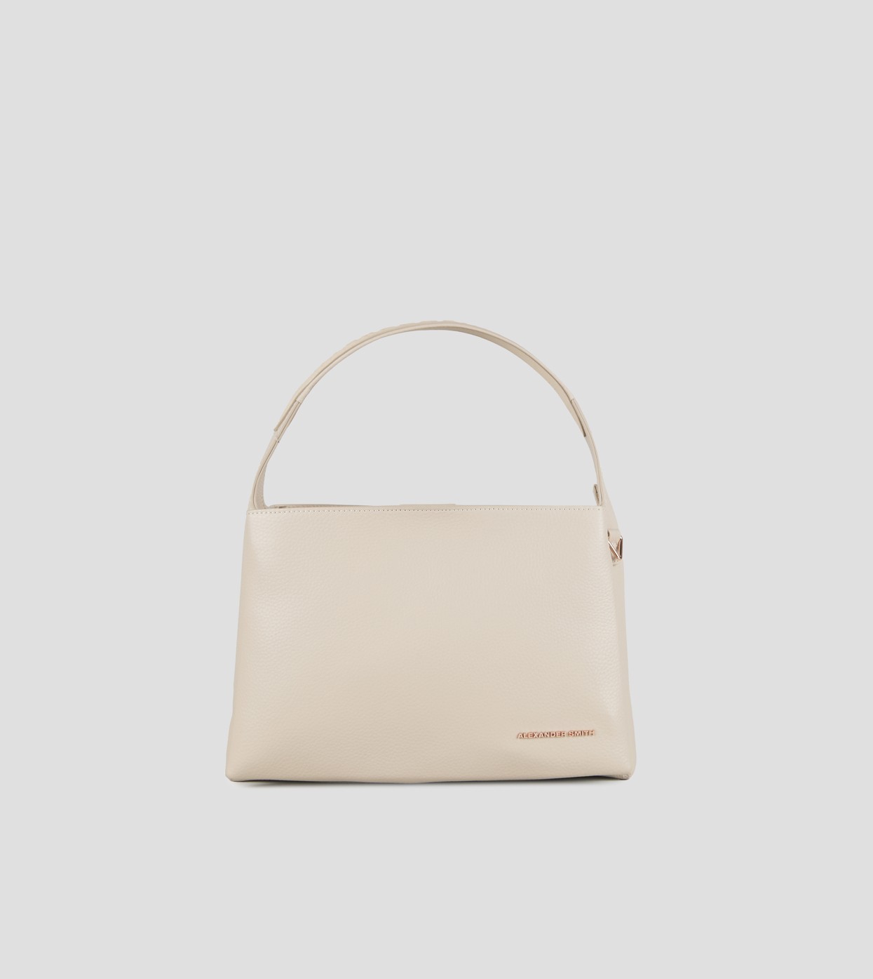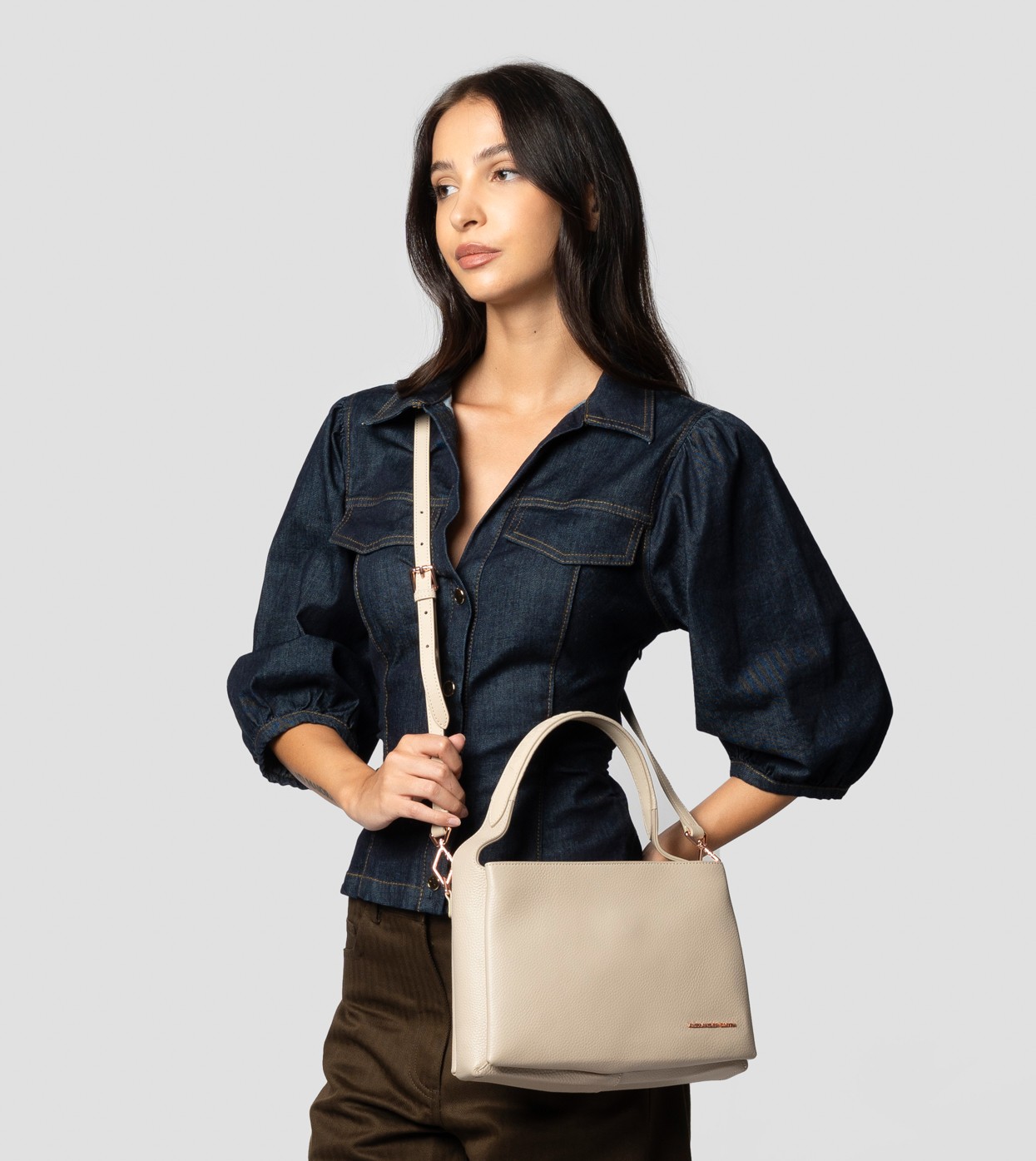 Cindy shoulder bag with shoulder strap in beige tumbled leather