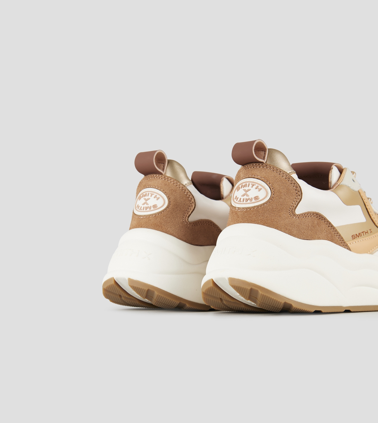 Horizon Woman in white with brown suede details