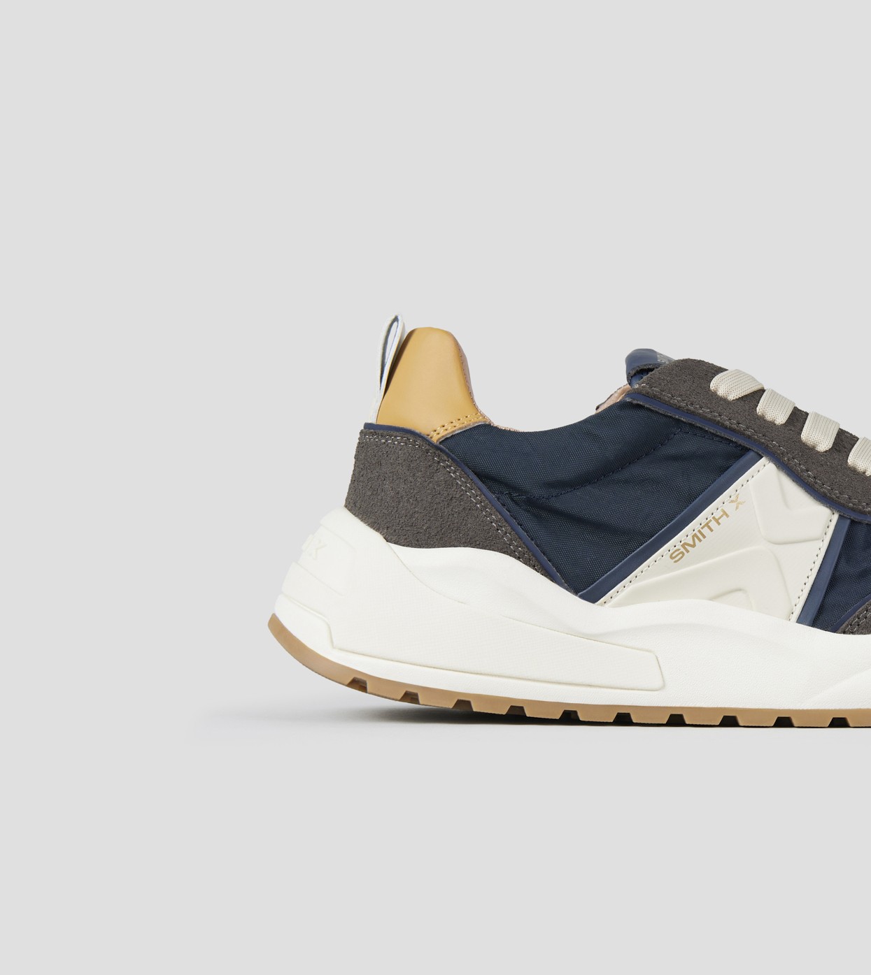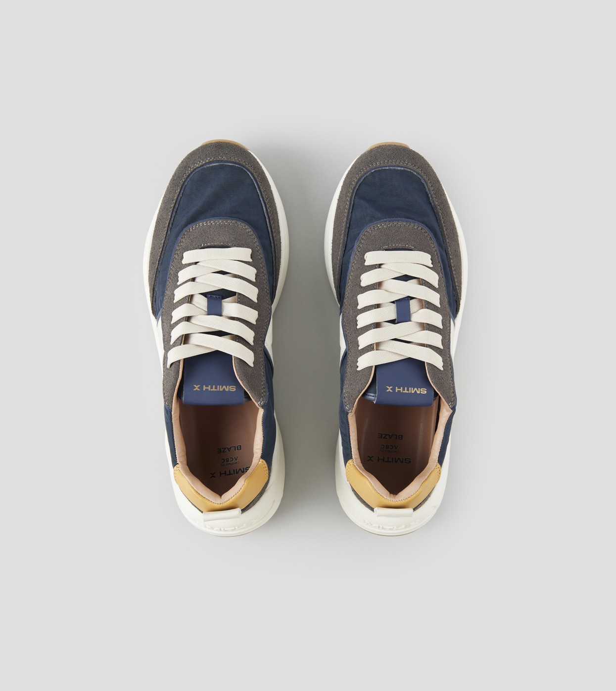 Pensata per chi non si ferma mai, Blaze unisce estetica sportiva e dettagli premium in una sneaker dal carattere deciso. Linee dinamiche, suola chunky e materiali selezionati si fondono per accompagnarti con stile dalla città al tempo libero. Esprimi la tua personalità passo dopo passo con questa variante in suede marrone e nylon blu con logo laterale bianco.