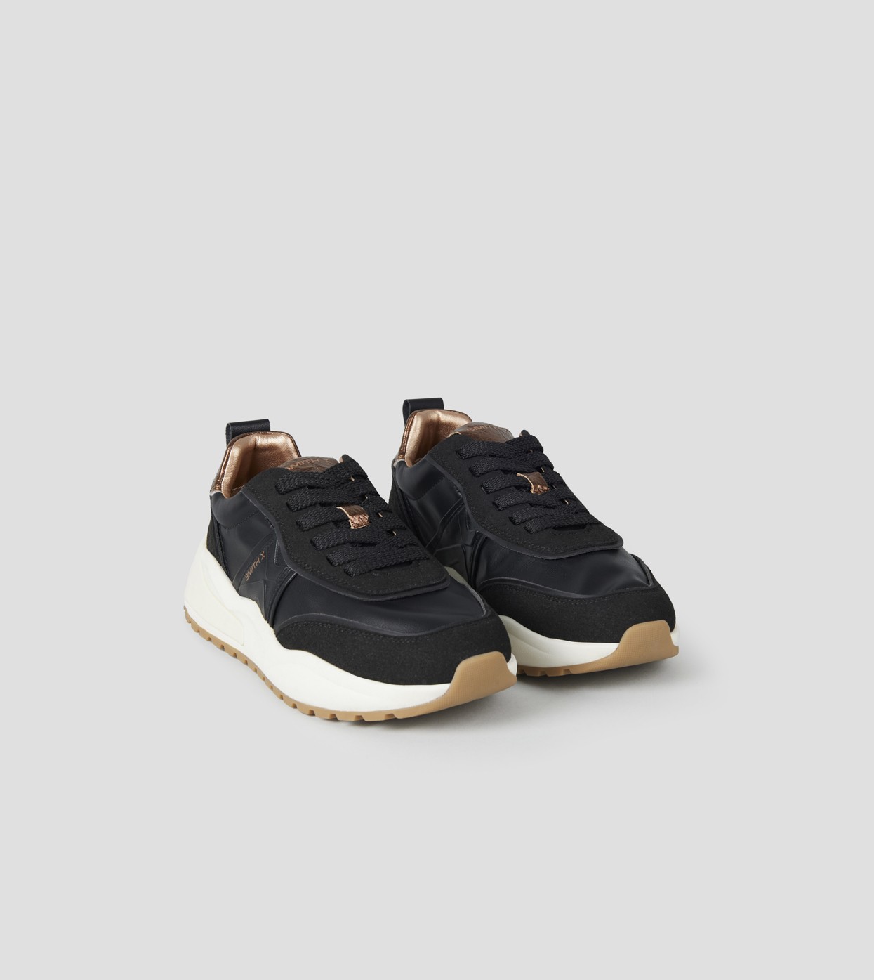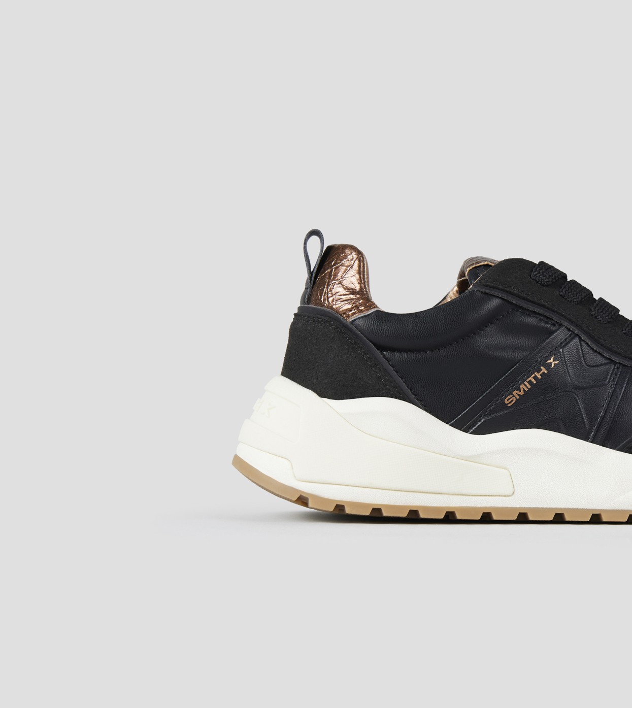 Pensata per chi non si ferma mai, Blaze unisce estetica sportiva e dettagli premium in una sneaker dal carattere deciso. Linee dinamiche, suola chunky e materiali selezionati si fondono per accompagnarti con stile dalla città al tempo libero. Esprimi la tua personalità passo dopo passo con questa variante in nero con tallone in laminato stropicciato rame.