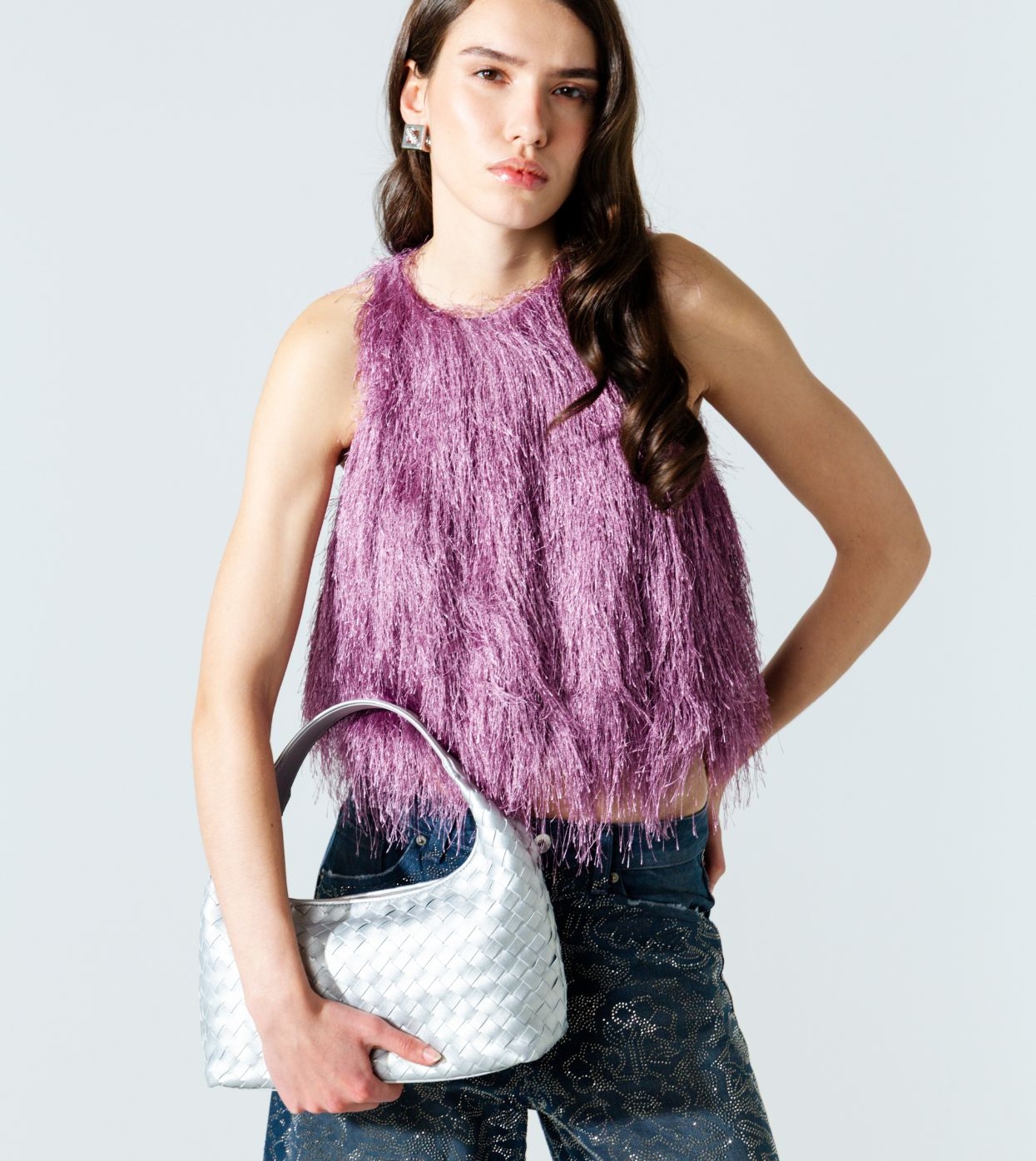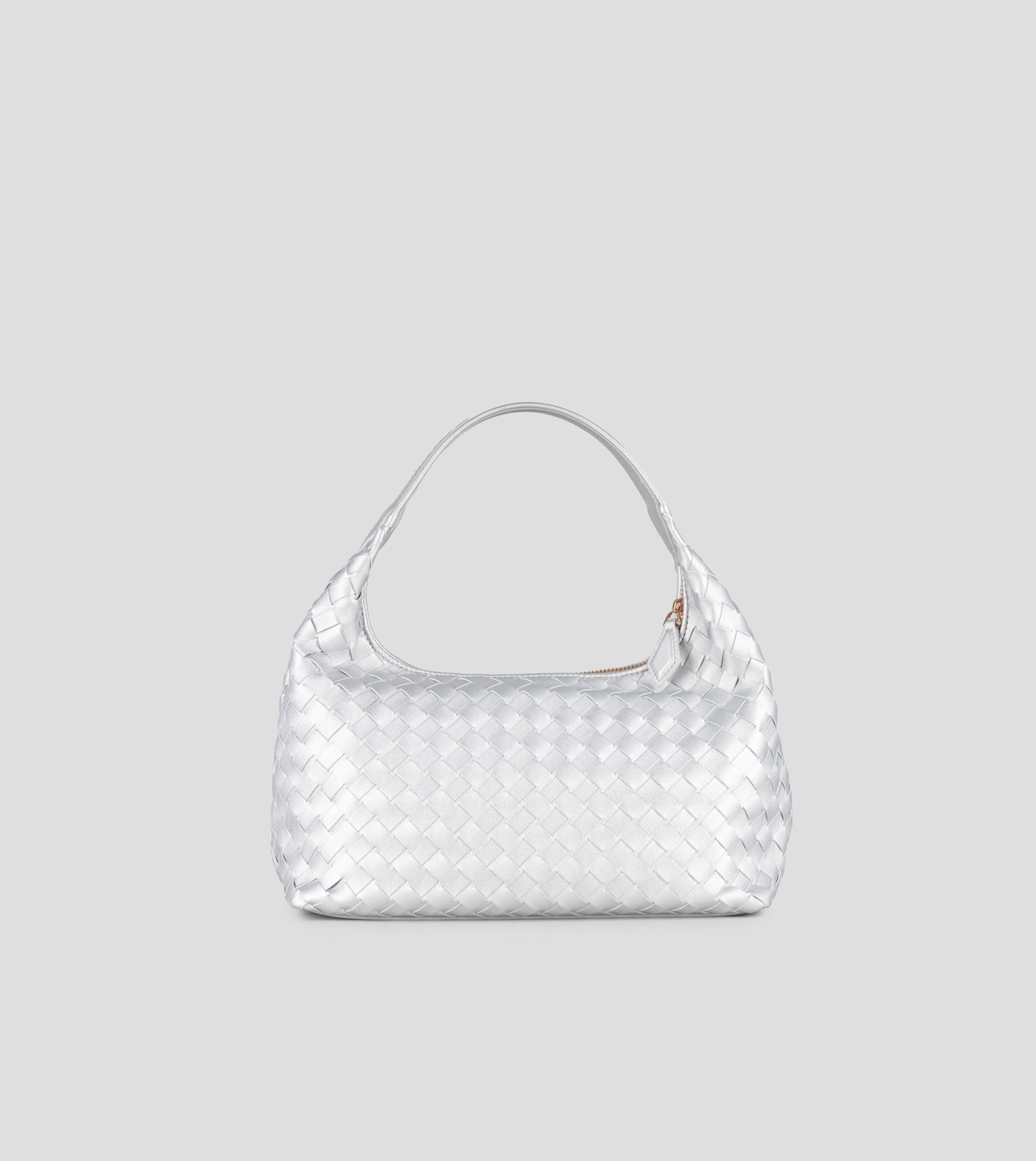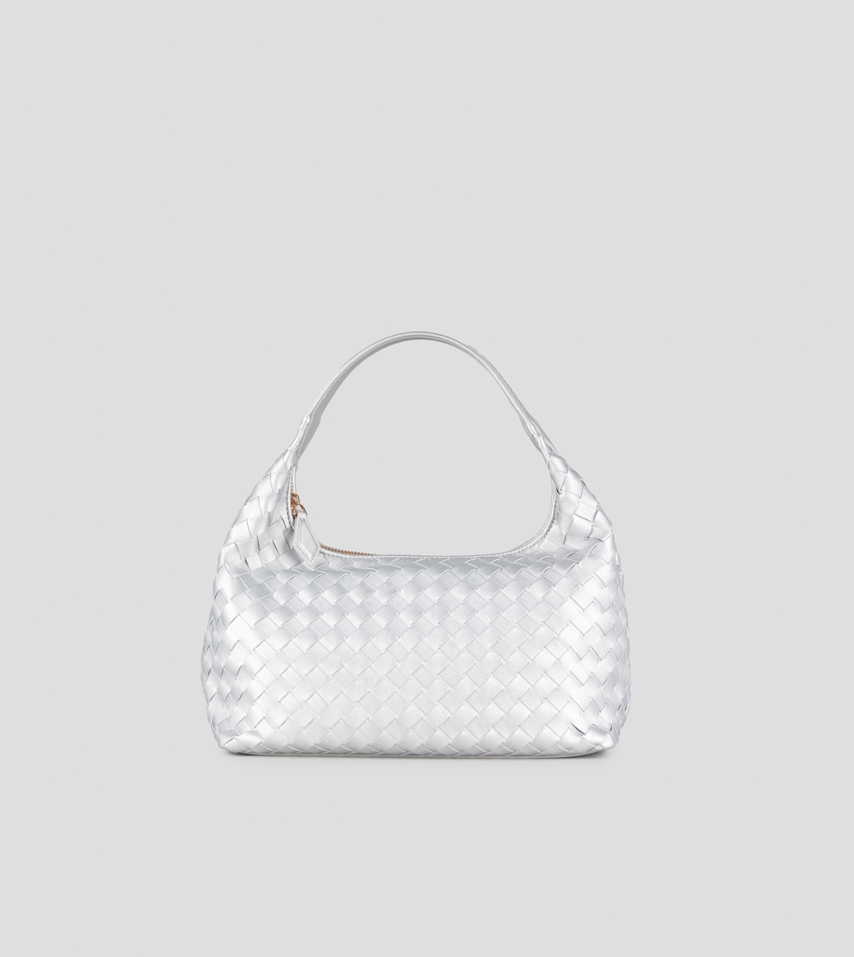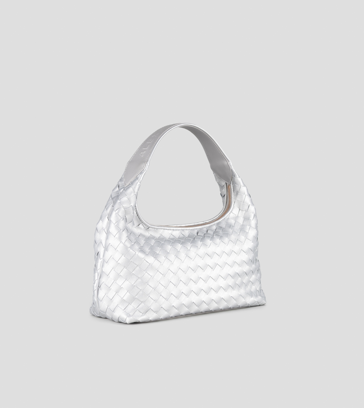 La nuova hobo bag unisce comfort e sofisticata raffinatezza in una silhouette senza tempo. CHLOE è la borsa perfetta per accompagnarti con eleganza dal giorno alla sera, grazie alla sua capienza e al design fluido ma strutturato, in questa versione in pelle intrecciata laminata argento.