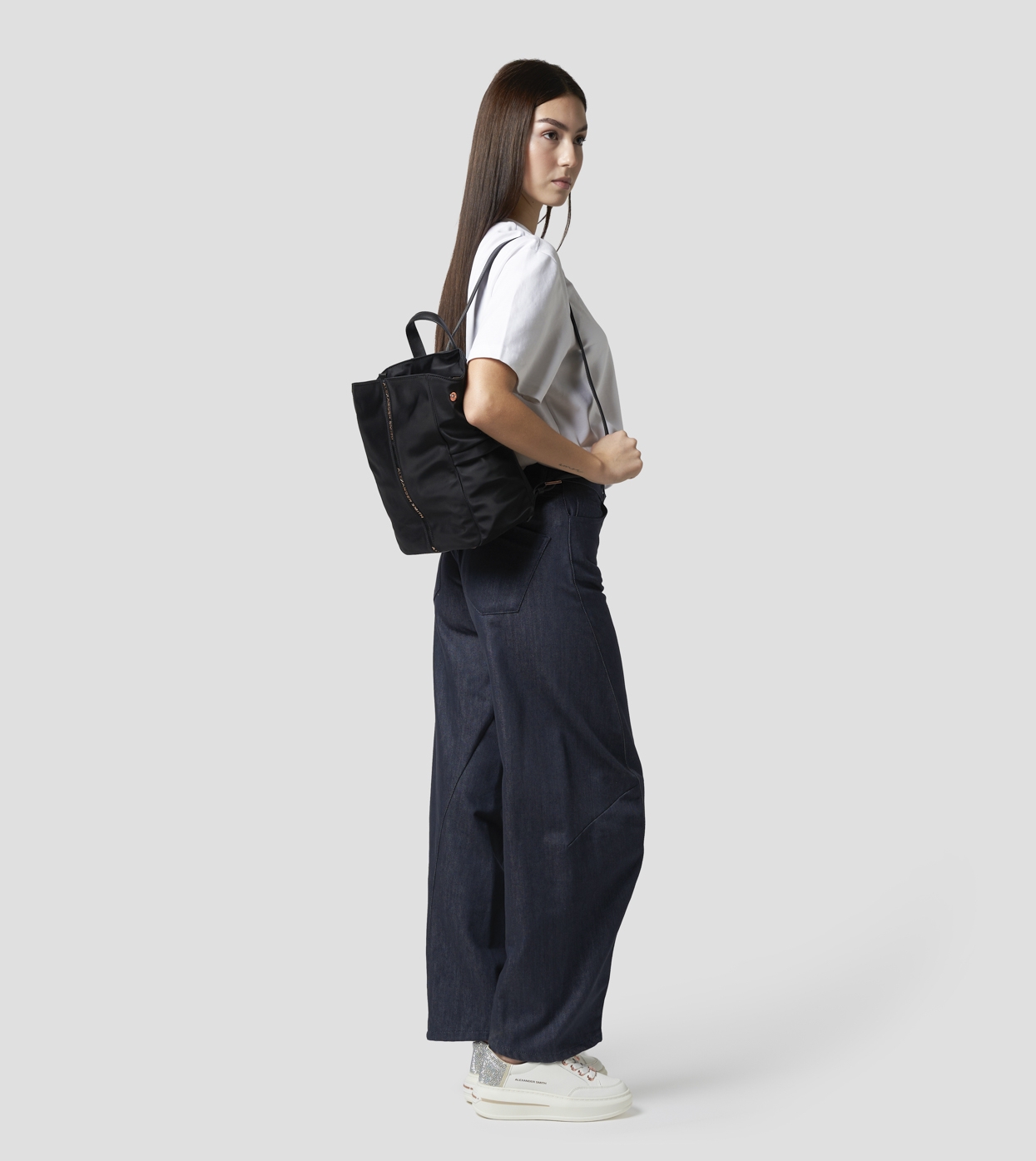 Linee pulite, volume morbido e dettagli ricercati lo rendono il compagno ideale per ogni giornata: dal lavoro al tempo libero. La signature tape verticale dona carattere e identità, mentre gli spazi interni organizzati assicurano la massima praticità.