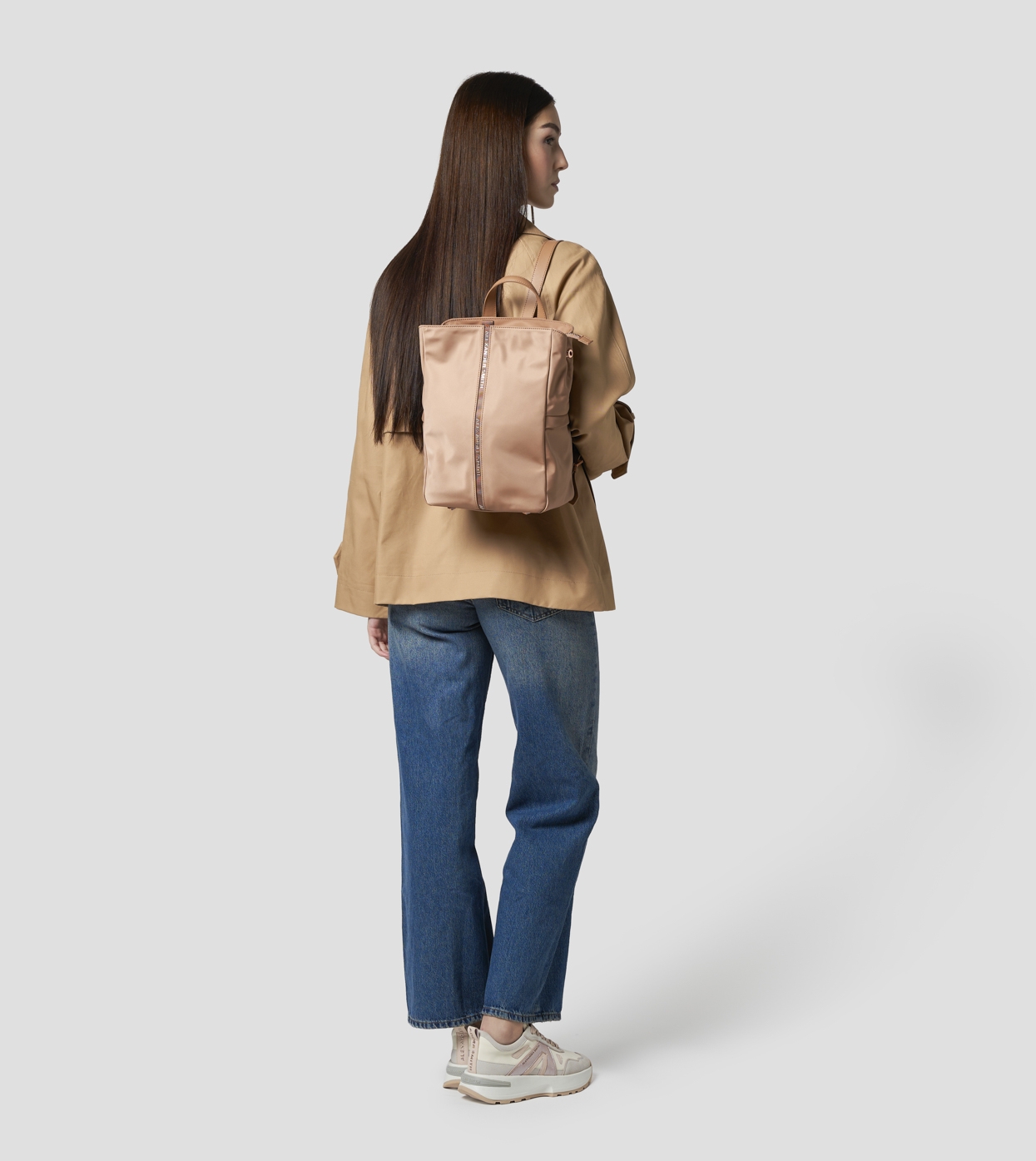 Linee pulite, volume morbido e dettagli ricercati lo rendono il compagno ideale per ogni giornata: dal lavoro al tempo libero. La signature tape verticale dona carattere e identità, mentre gli spazi interni organizzati assicurano la massima praticità.