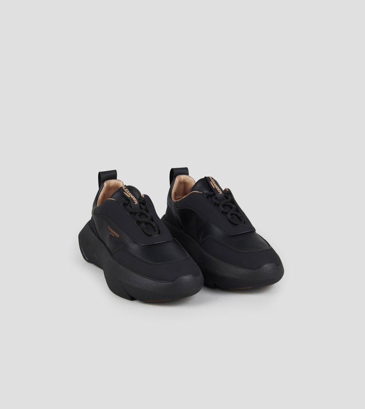 Eclipse unisce audacia e minimalismo in una sneaker dalla leggerezza straordinaria. Rappresenta il punto di incontro perfetto tra raffinatezza e comfort. Pensata per chi cerca agilità e performance senza rinunciare allo stile, Eclipse illumina ogni percorso con la sua essenza dinamica e contemporanea, in questa variante in nappa e gommato nero con suola nera.