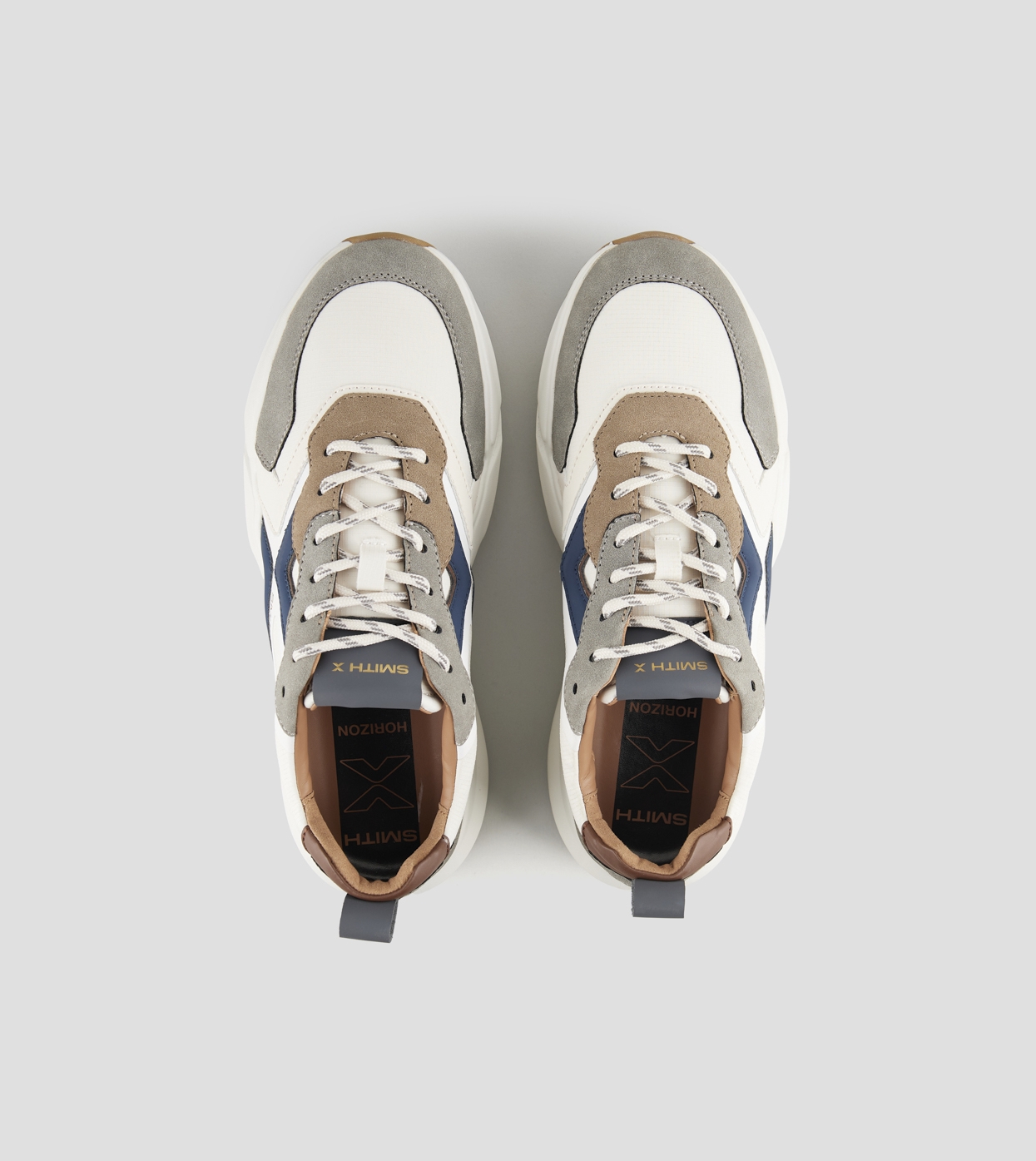 Nata per muoversi, progettata per distinguersi. HORIZON è la sneaker running di Smith X che guarda avanti, oltre ogni limite. Con la sua silhouette robusta ma slanciata, la suola oversize e il mix materico a contrasto, HORIZON unisce performance e stile con disinvoltura.