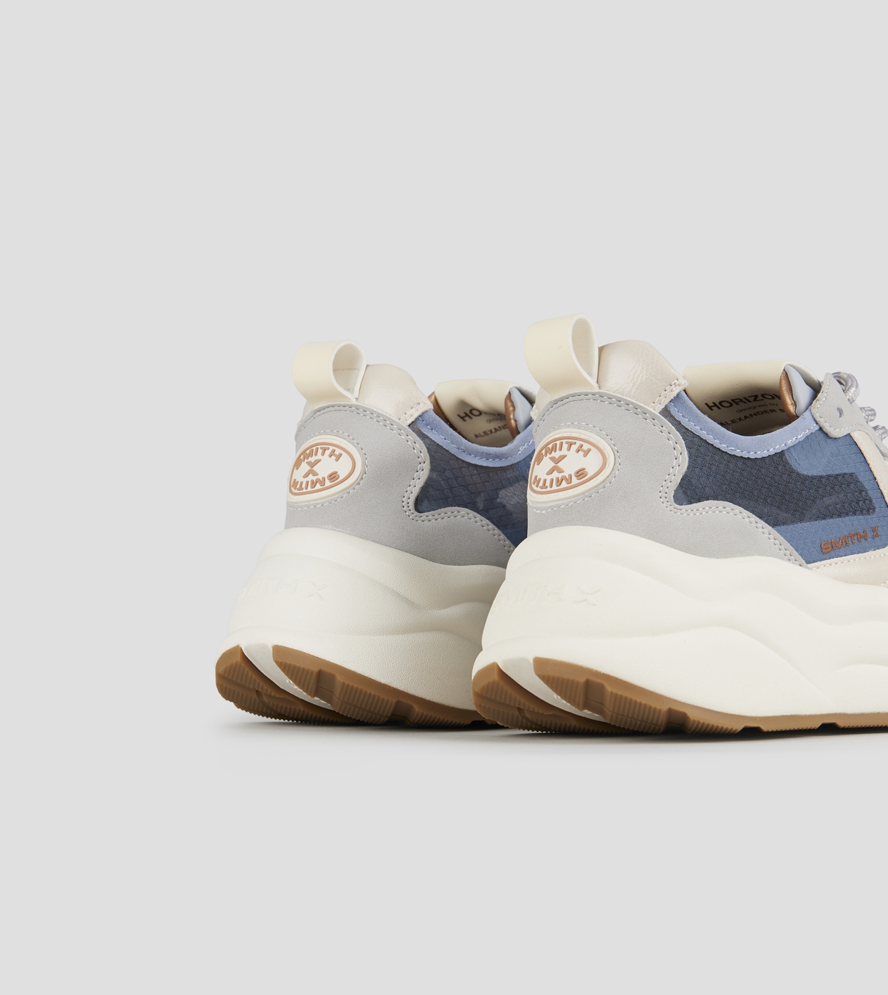 Nata per muoversi, progettata per distinguersi. HORIZON è la sneaker running di Smith X che guarda avanti, oltre ogni limite. Con la sua silhouette robusta ma slanciata, la suola oversize e il mix materico a contrasto, HORIZON unisce performance e stile con disinvoltura.