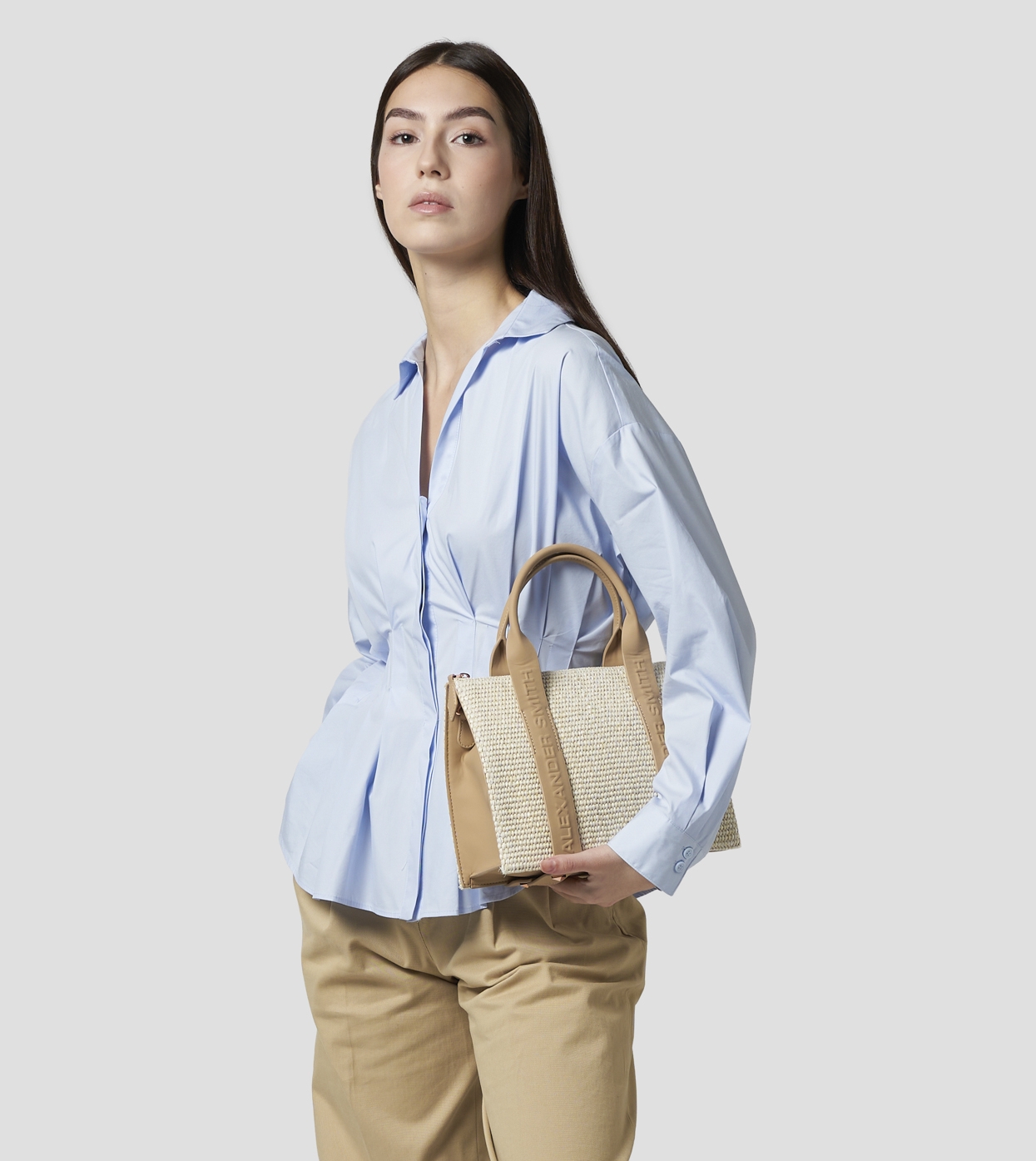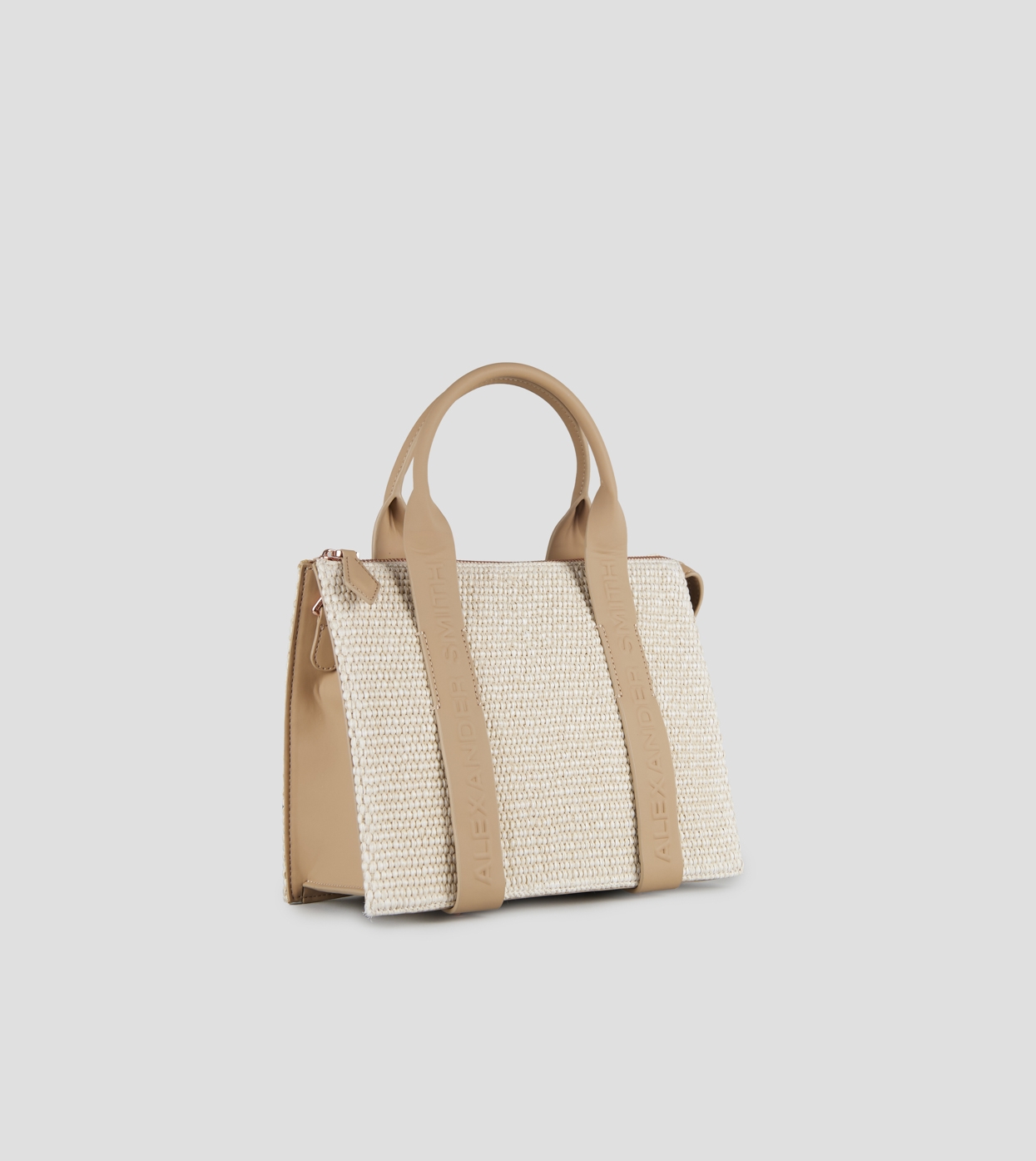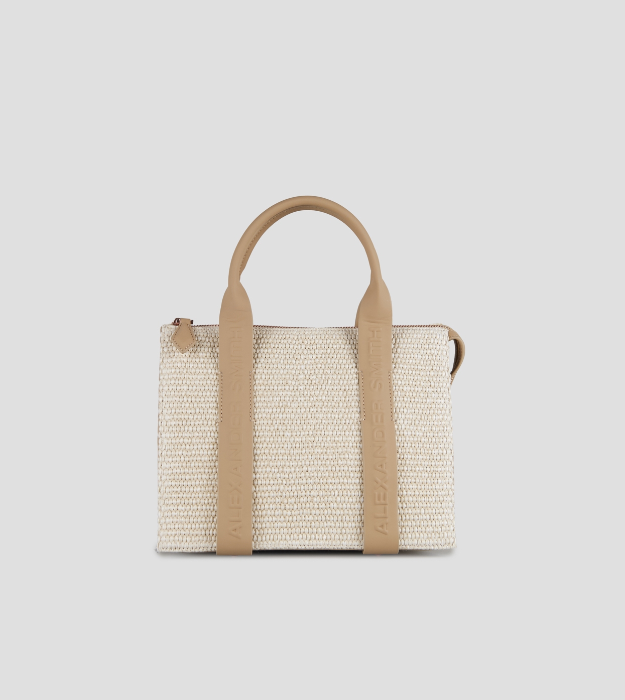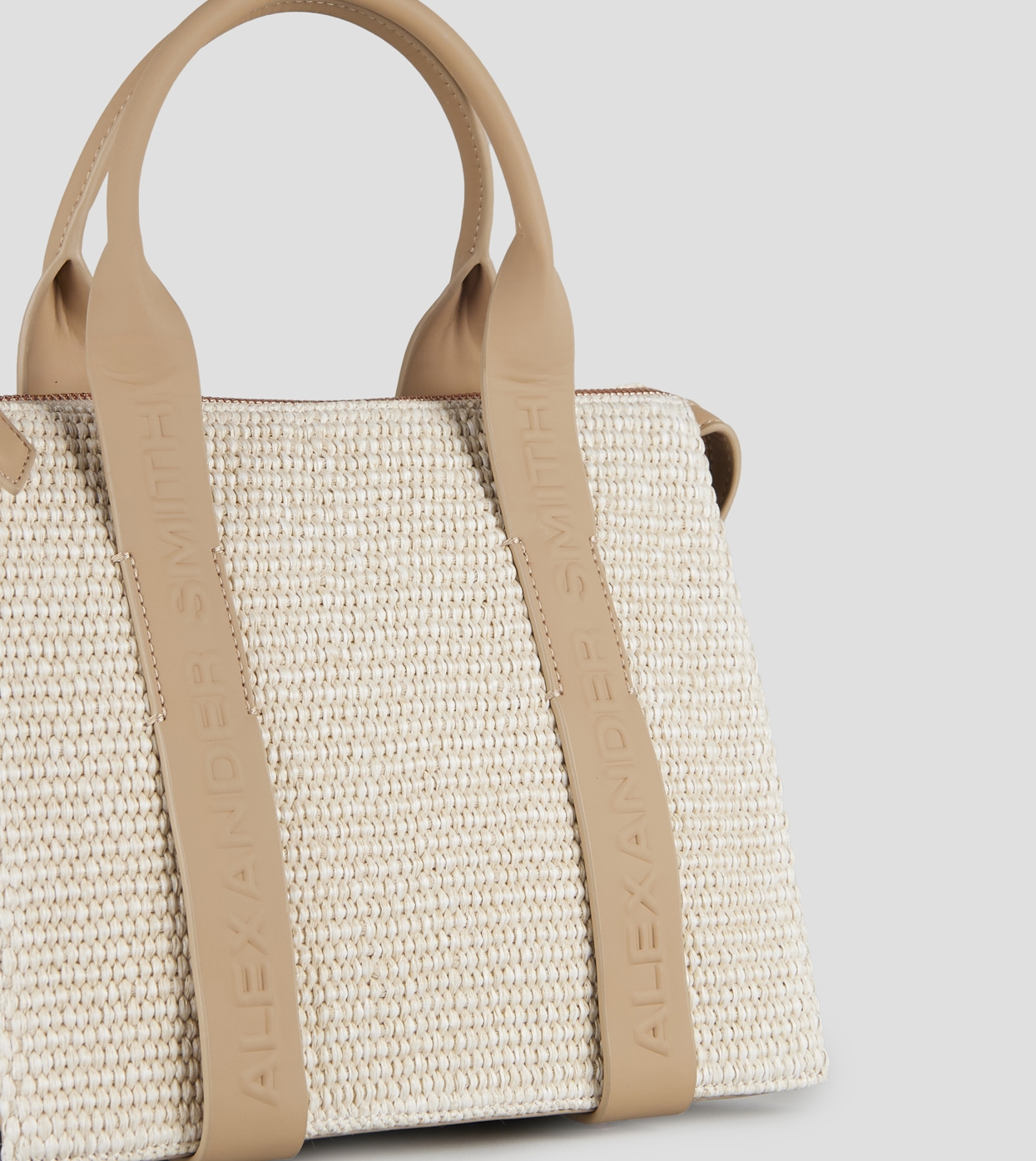 Jane Small borsa a mano con tracolla in rafia e manico sabbia