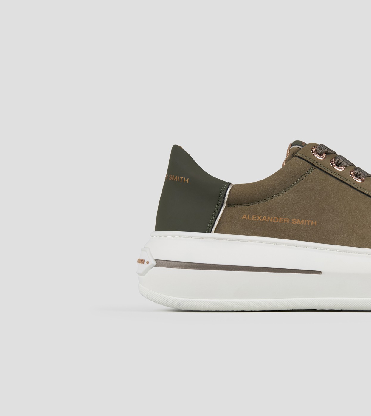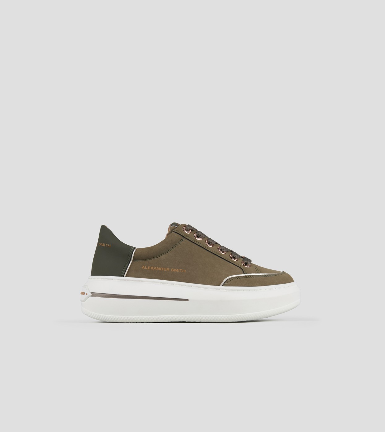 Il modello prende il nome da Lancaster Gate, zona del centro di Londra adiacente ai Kensington Gardens: un’area residenziale in cui lo stile classico e barocco delle abitazioni si fonde con i resti di una chiesa Gotica del 1800. Con lo stesso perfetto mix di stili, la Lancaster di Alexander Smith è un match tra i dettagli preziosi e ricercati della tomaia e degli occhielli, con l’audacia e l’importanza della suola, per uno stile che combina eleganza e unicità, in perfetta sintonia con l’anima del brand, in questa variante in suede verde militare e tallone in pelle gommata.