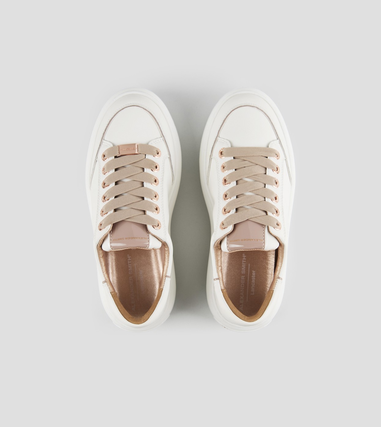 Il modello prende il nome da Lancaster Gate, zona del centro di Londra adiacente ai Kensington Gardens: un’area residenziale in cui lo stile classico e barocco delle abitazioni si fonde con i resti di una chiesa Gotica del 1800. Con lo stesso perfetto mix di stili, la Lancaster di Alexander Smith è un match tra i dettagli preziosi e ricercati della tomaia e degli occhielli, con l’audacia e l’importanza della suola, per uno stile che combina eleganza e unicità, in perfetta sintonia con l’anima del brand, in questa variante in pelle bottalata bianca e dettagli sabbia.