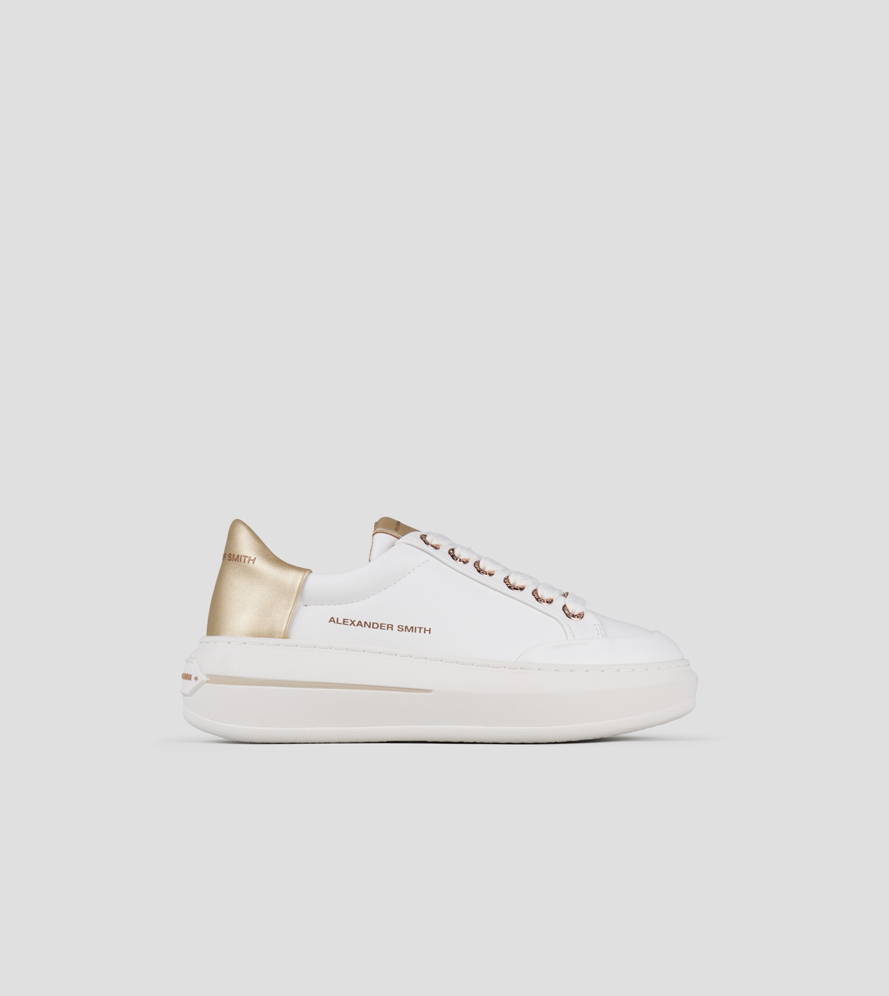 Lancaster Donna in pelle bianca e tallone in laminato oro