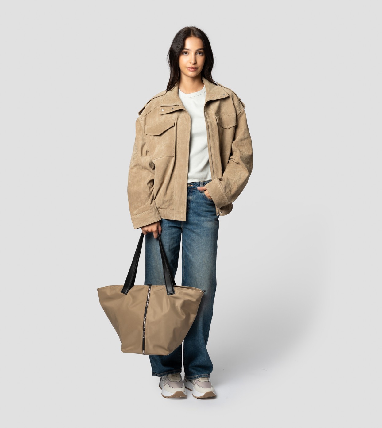 LAUREN è la shopper che unisce funzionalità e stile in un design contemporaneo e deciso. Le linee geometriche e il dettaglio centrale con logo definiscono un carattere forte ma versatile, perfetto per completare ogni look con un tocco moderno.