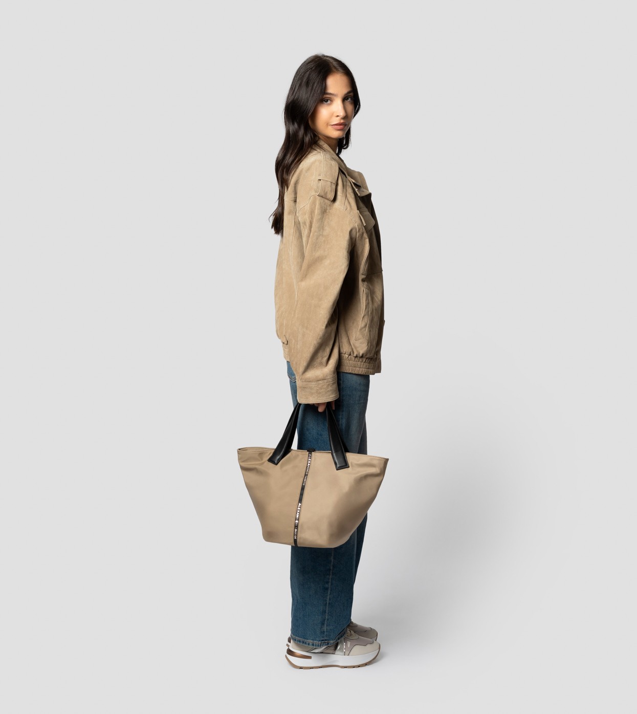 LAUREN è la shopper che unisce funzionalità e stile in un design contemporaneo e deciso. Le linee geometriche e il dettaglio centrale con logo definiscono un carattere forte ma versatile, perfetto per completare ogni look con un tocco moderno.