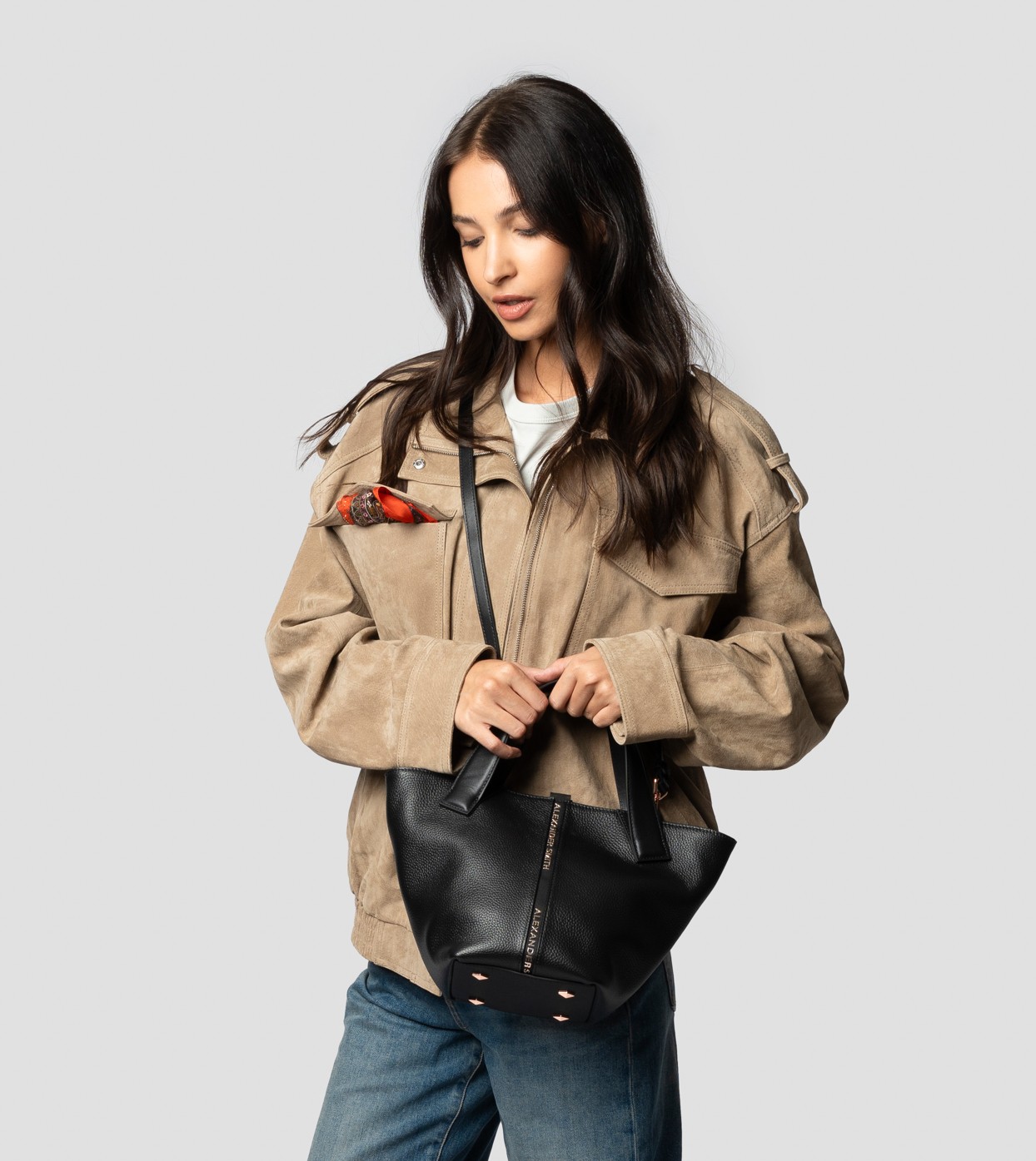 LAUREN è la shopper che unisce funzionalità e stile in un design contemporaneo e deciso. Le linee geometriche e il dettaglio centrale con logo definiscono un carattere forte ma versatile, perfetto per completare ogni look con un tocco moderno.