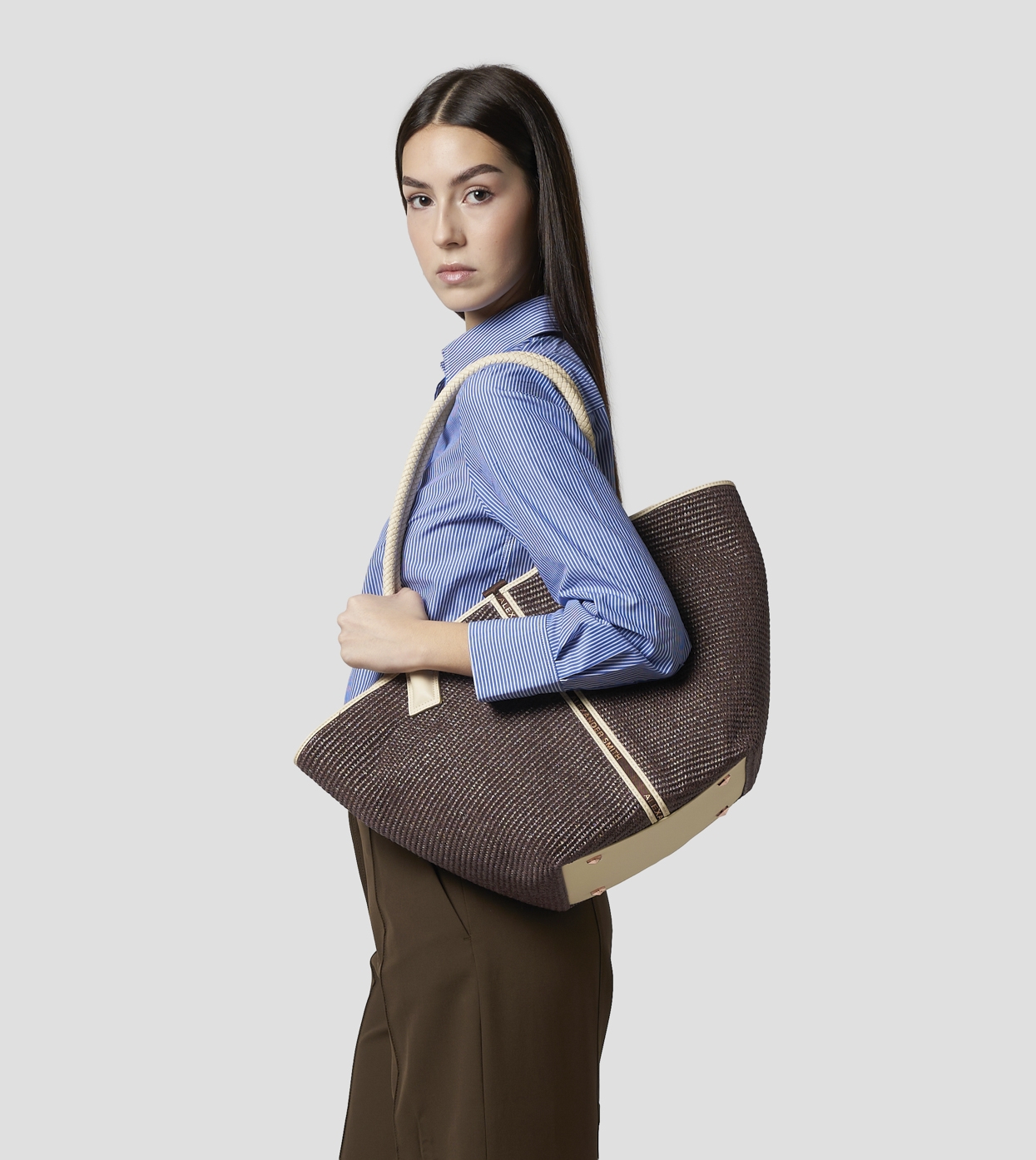 LAUREN è la shopper che unisce funzionalità e stile in un design contemporaneo e deciso. Le linee geometriche e il dettaglio centrale con logo definiscono un carattere forte ma versatile, perfetto per completare ogni look con un tocco moderno.