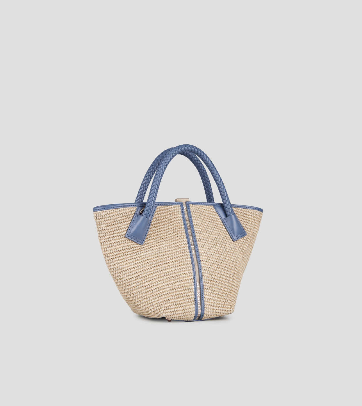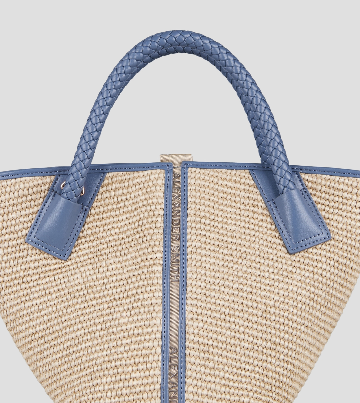 Lauren Small borsa a mano con tracolla in rafia beige e manico intrecciato azzurro