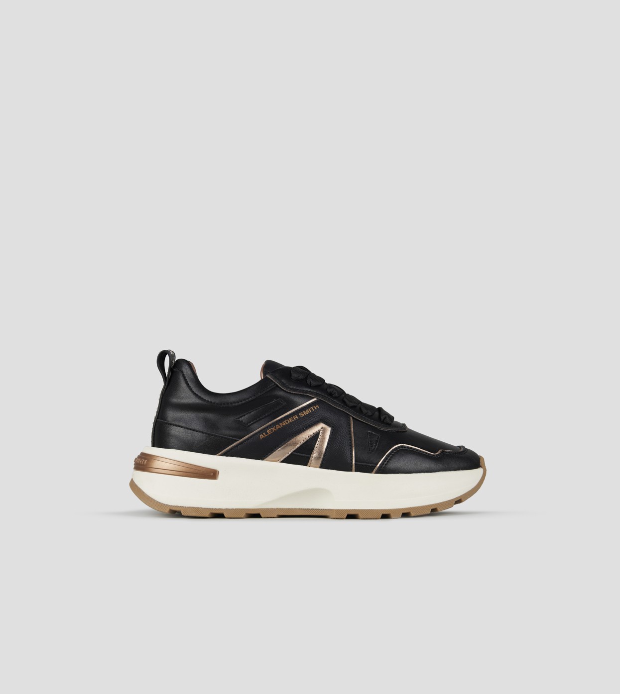 Il nuovo modello firmato Alexander Smith, che prende ispirazione da una delle città più iconiche del Regno Unito, è la nuova proposta running del brand: linea affusolata, suola importante e dettagli ricercati danno vita ad una sneakers versatile e distintiva, in questa variante in pelle nera con logo laterale in glitter.