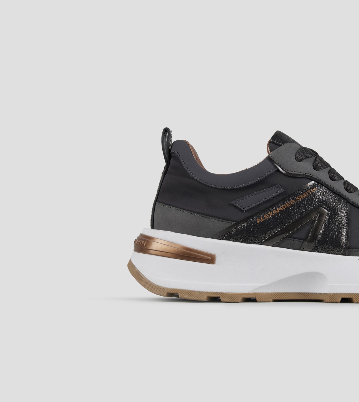 Il nuovo modello firmato Alexander Smith, che prende ispirazione da una delle città più iconiche del Regno Unito, è la nuova proposta running del brand: linea affusolata, suola importante e dettagli ricercati danno vita ad una sneakers versatile e distintiva, in questa variante in nylon grigio scuro e laminato polveroso in tinta.