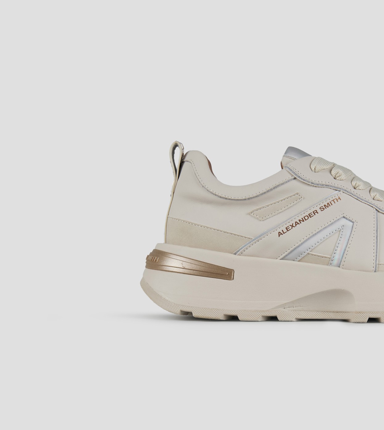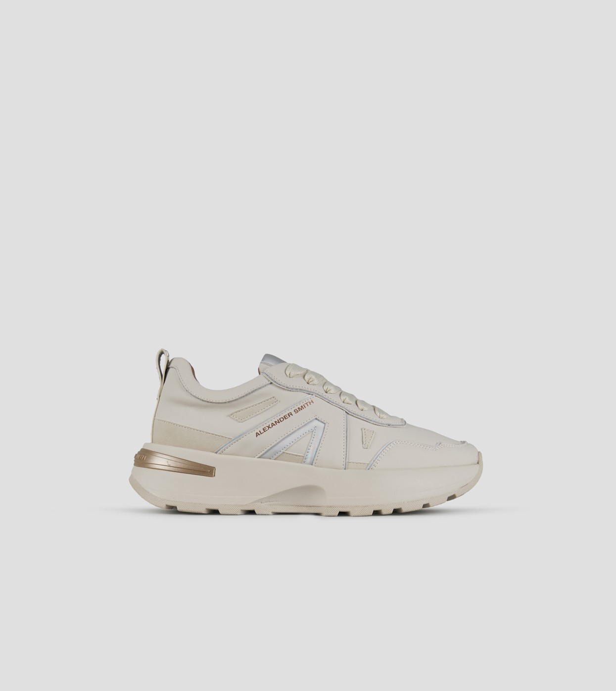 Il nuovo modello firmato Alexander Smith, che prende ispirazione da una delle città più iconiche del Regno Unito, è la nuova proposta running del brand: linea affusolata, suola importante e dettagli ricercati danno vita ad una sneakers versatile e distintiva, in questa variante in pelle e specchiato opaco avorio.