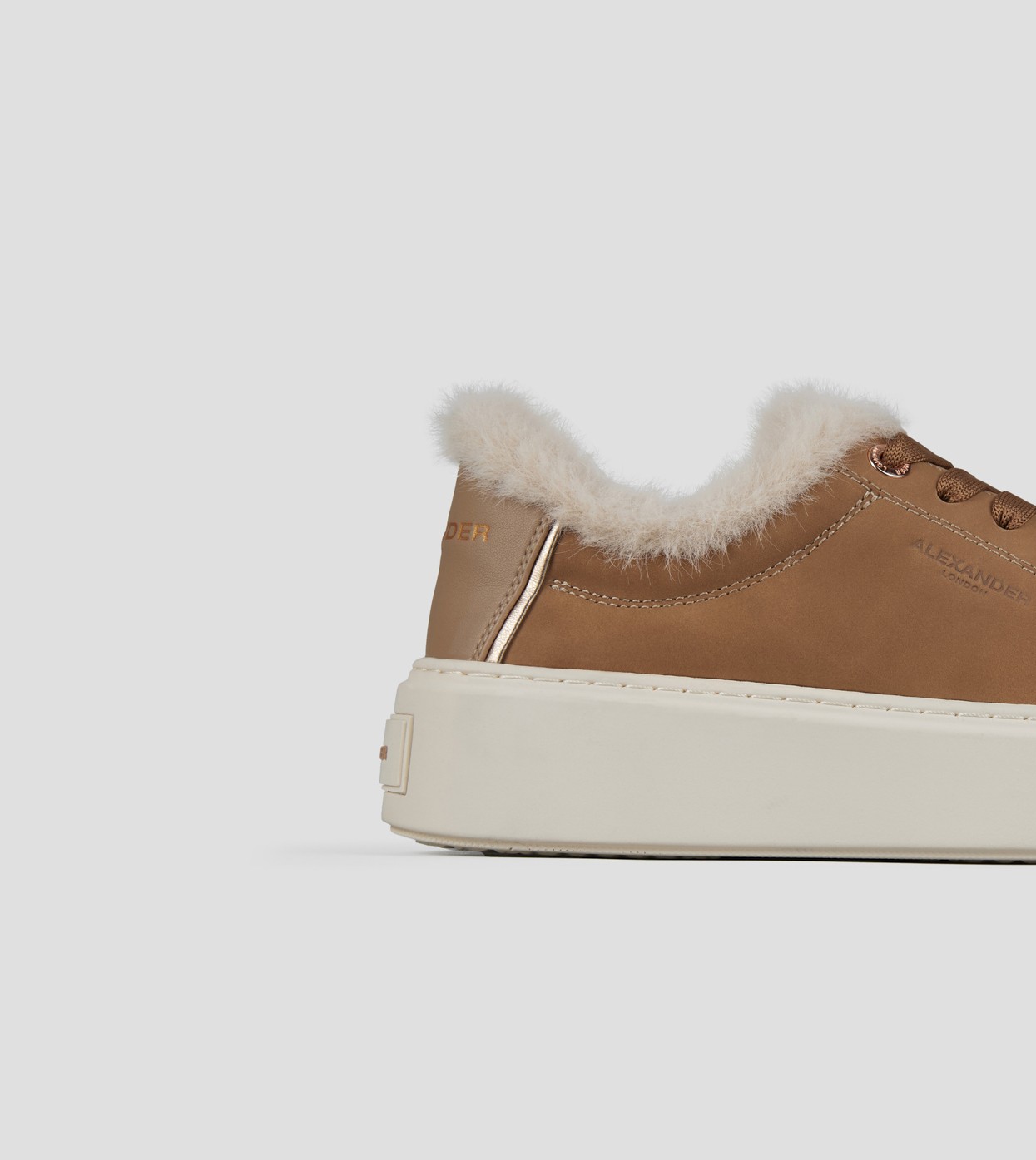 London Alta Donna in pelle sabbia e fodera in eco-pelliccia bianca