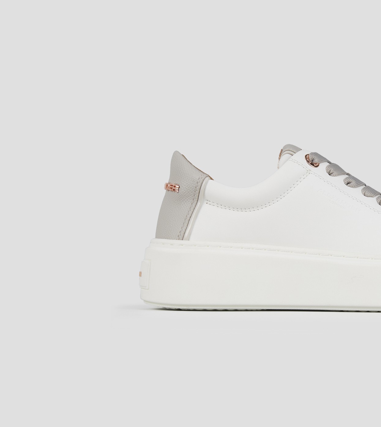 London Alta Donna in pelle liscia bianca e tallone in pelle palmellata grigia