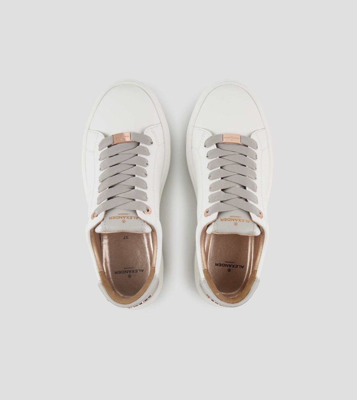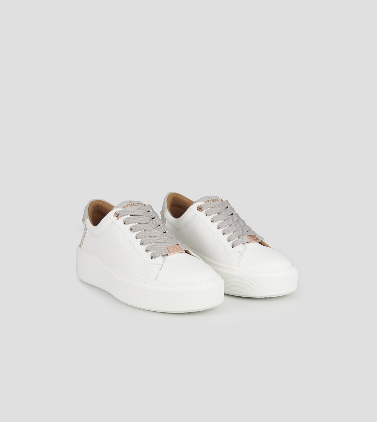 Ispirata allo stile dinamico e sofisticato della capitale britannica, London è la sneaker firmata Alexander London che unisce design contemporaneo e comfort quotidiano. Realizzata con materiali premium e finiture curate nei minimi dettagli, London è pensata per chi vive la città con stile, tra incontri di lavoro e momenti di relax. Un classico urbano rivisitato, perfetto per distinguersi con discrezione, in questa versione con suola alta in pelle liscia bianca e tallone in pelle palmellata grigia.