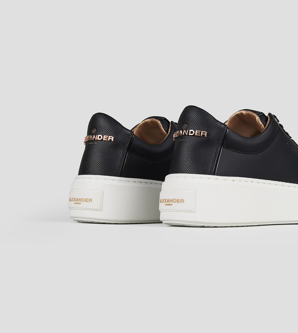 Ispirata allo stile dinamico e sofisticato della capitale britannica, London è la sneaker firmata Alexander London che unisce design contemporaneo e comfort quotidiano. Realizzata con materiali premium e finiture curate nei minimi dettagli, London è pensata per chi vive la città con stile, tra incontri di lavoro e momenti di relax. Un classico urbano rivisitato, perfetto per distinguersi con discrezione, in questa versione con suola alta in pelle liscia nera e tallone in pelle palmellata.