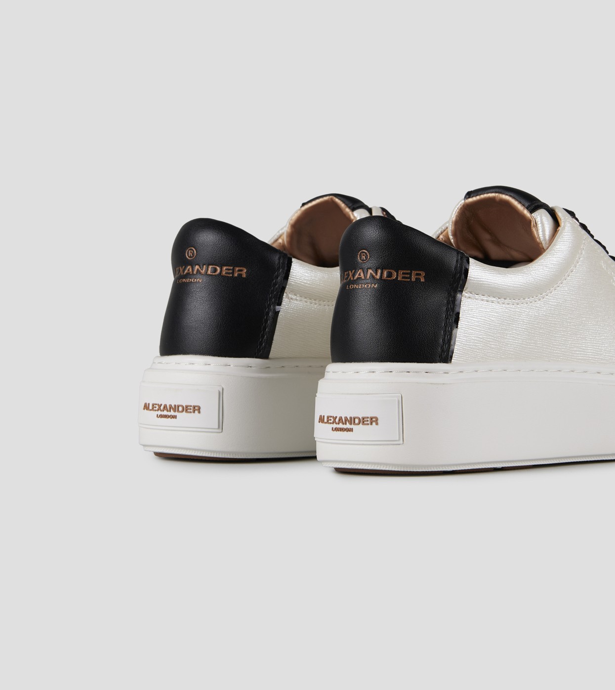 Ispirata allo stile dinamico e sofisticato della capitale britannica, London è la sneaker firmata Alexander London che unisce design contemporaneo e comfort quotidiano. Realizzata con materiali premium e finiture curate nei minimi dettagli, London è pensata per chi vive la città con stile, tra incontri di lavoro e momenti di relax. Un classico urbano rivisitato, perfetto per distinguersi con discrezione, in questa versione con suola alta in pelle palmellata perlata bianca e tallone nero.