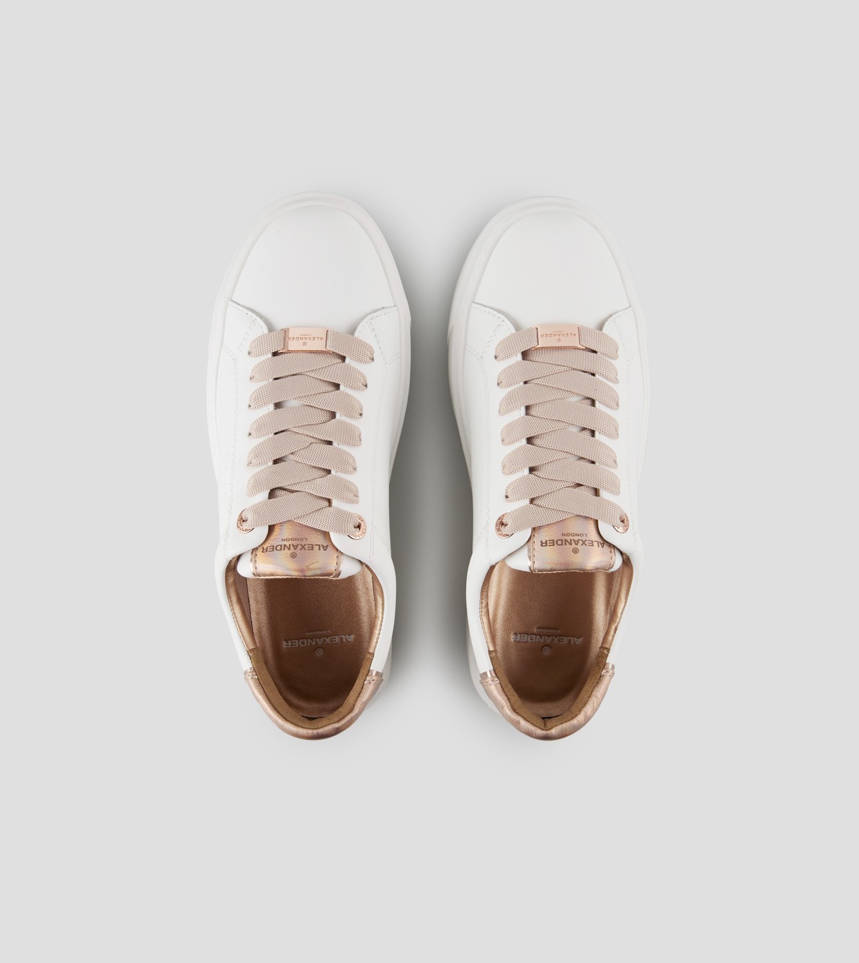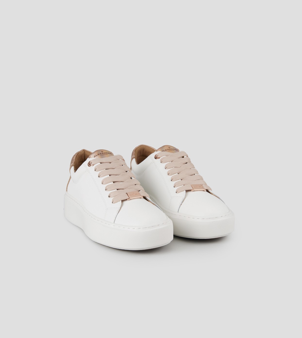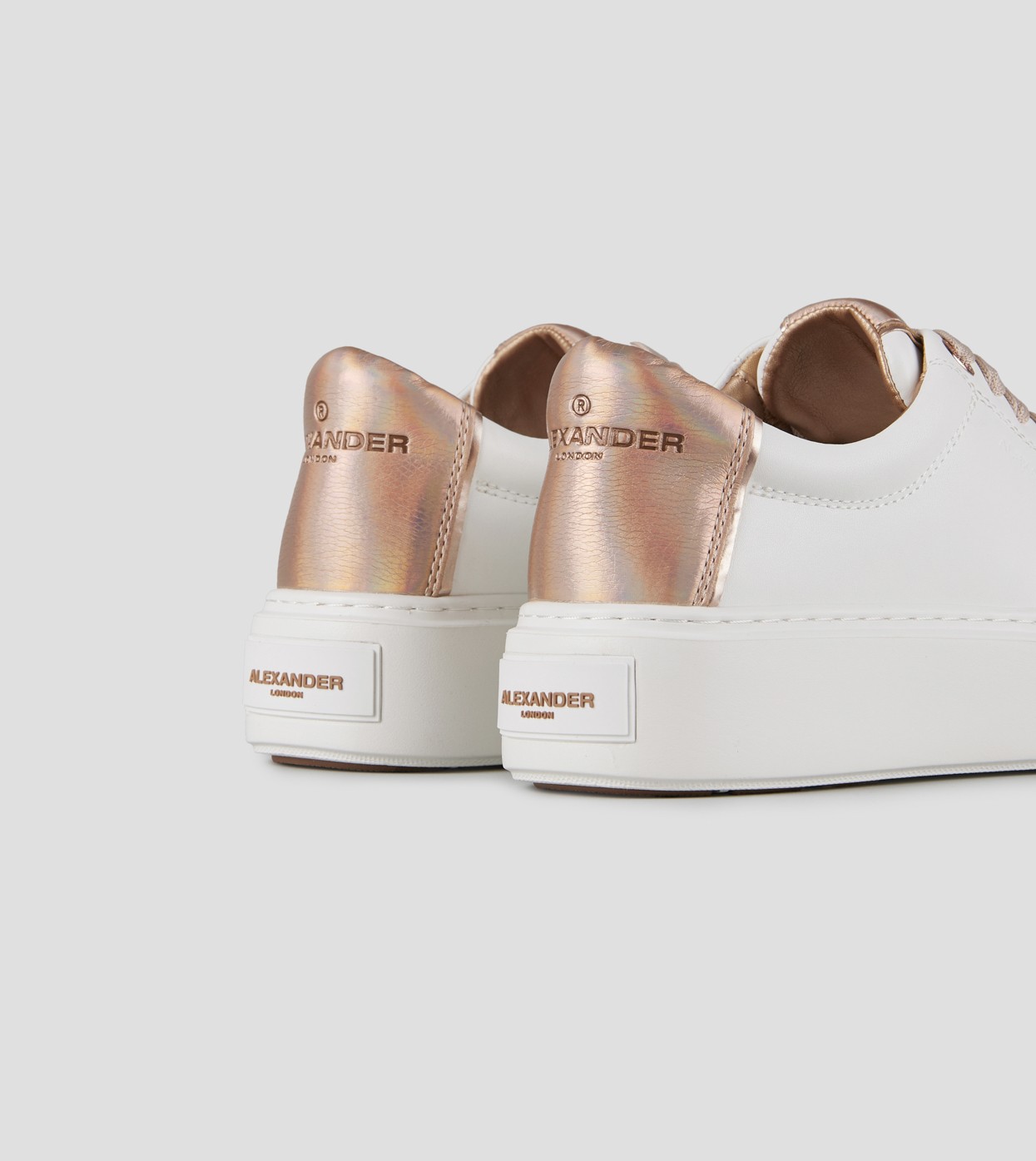 Ispirata allo stile dinamico e sofisticato della capitale britannica, London è la sneaker firmata Alexander London che unisce design contemporaneo e comfort quotidiano. Realizzata con materiali premium e finiture curate nei minimi dettagli, London è pensata per chi vive la città con stile, tra incontri di lavoro e momenti di relax. Un classico urbano rivisitato, perfetto per distinguersi con discrezione, in questa versione con suola alta in pelle liscia bianca e tallone in laminato bottalato rame.