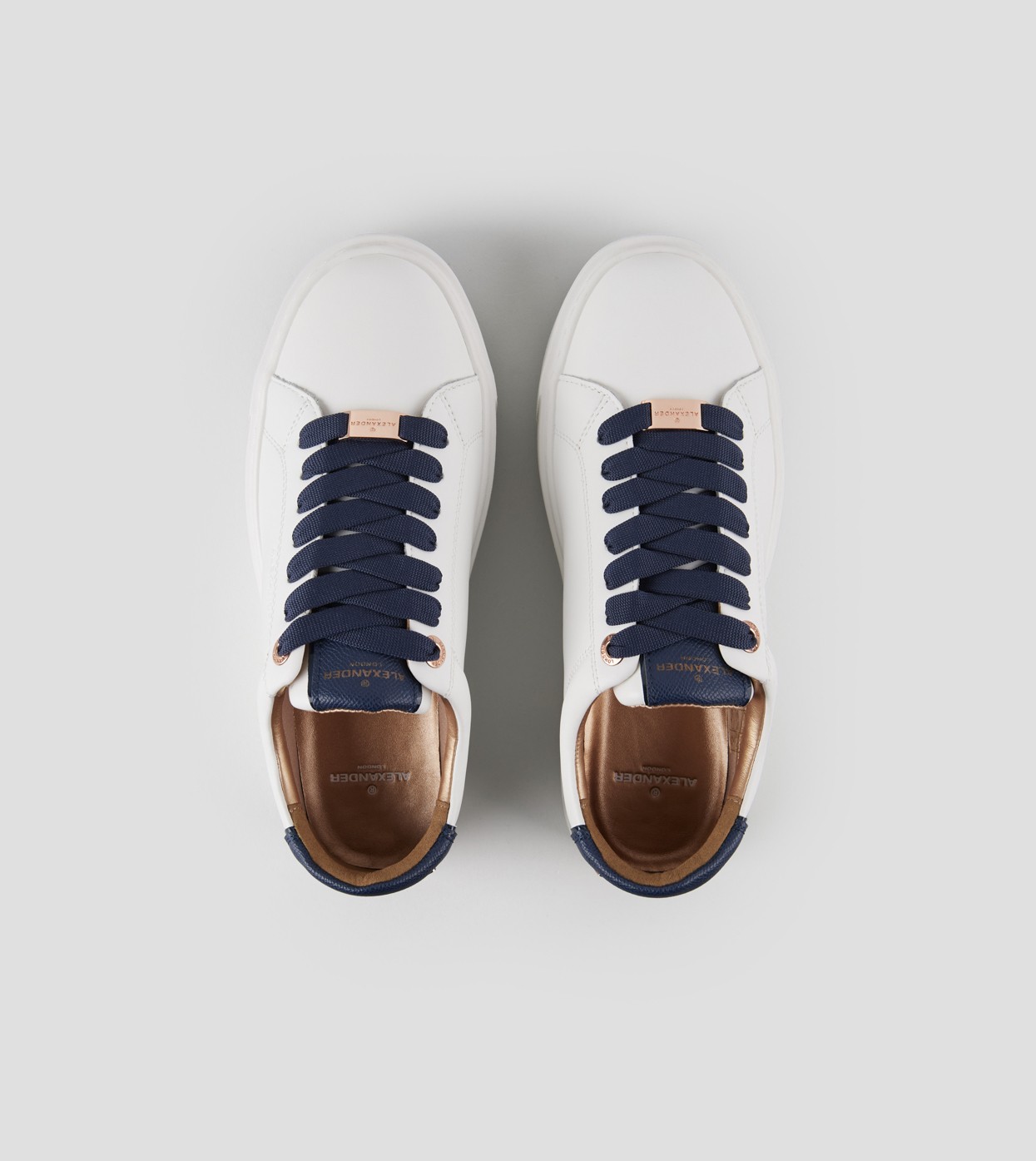 Ispirata allo stile dinamico e sofisticato della capitale britannica, London è la sneaker firmata Alexander London che unisce design contemporaneo e comfort quotidiano. Realizzata con materiali premium e finiture curate nei minimi dettagli, London è pensata per chi vive la città con stile, tra incontri di lavoro e momenti di relax. Un classico urbano rivisitato, perfetto per distinguersi con discrezione, in questa versione con suola alta in pelle liscia bianca e tallone in pelle palmellata blu.