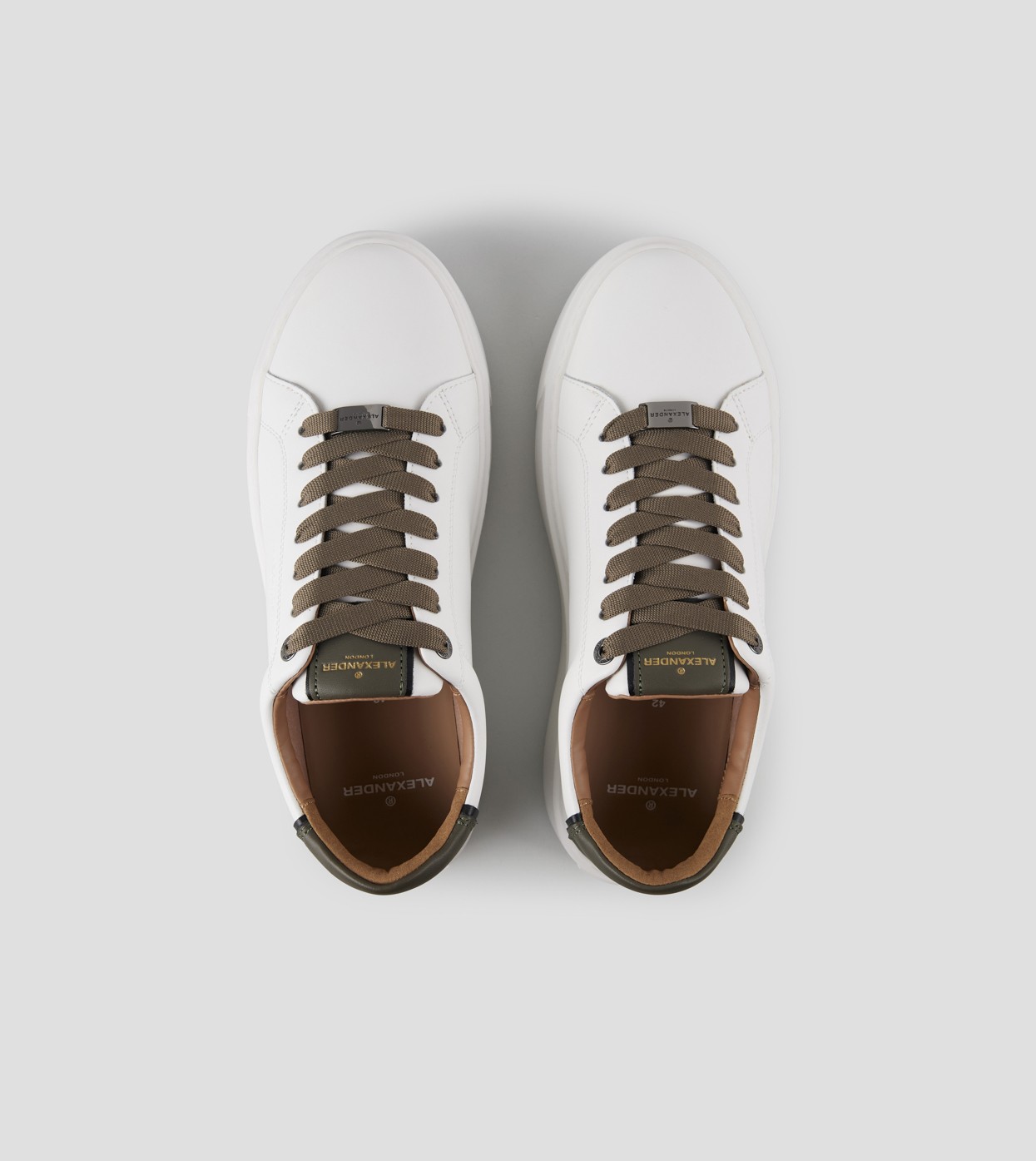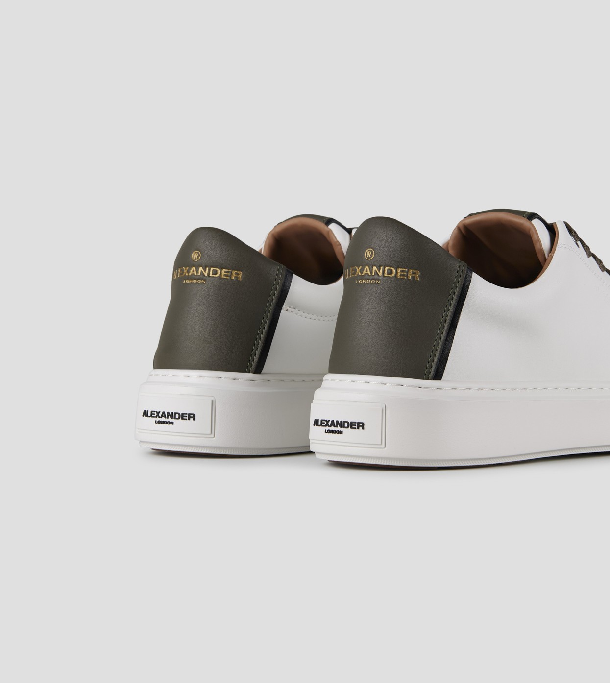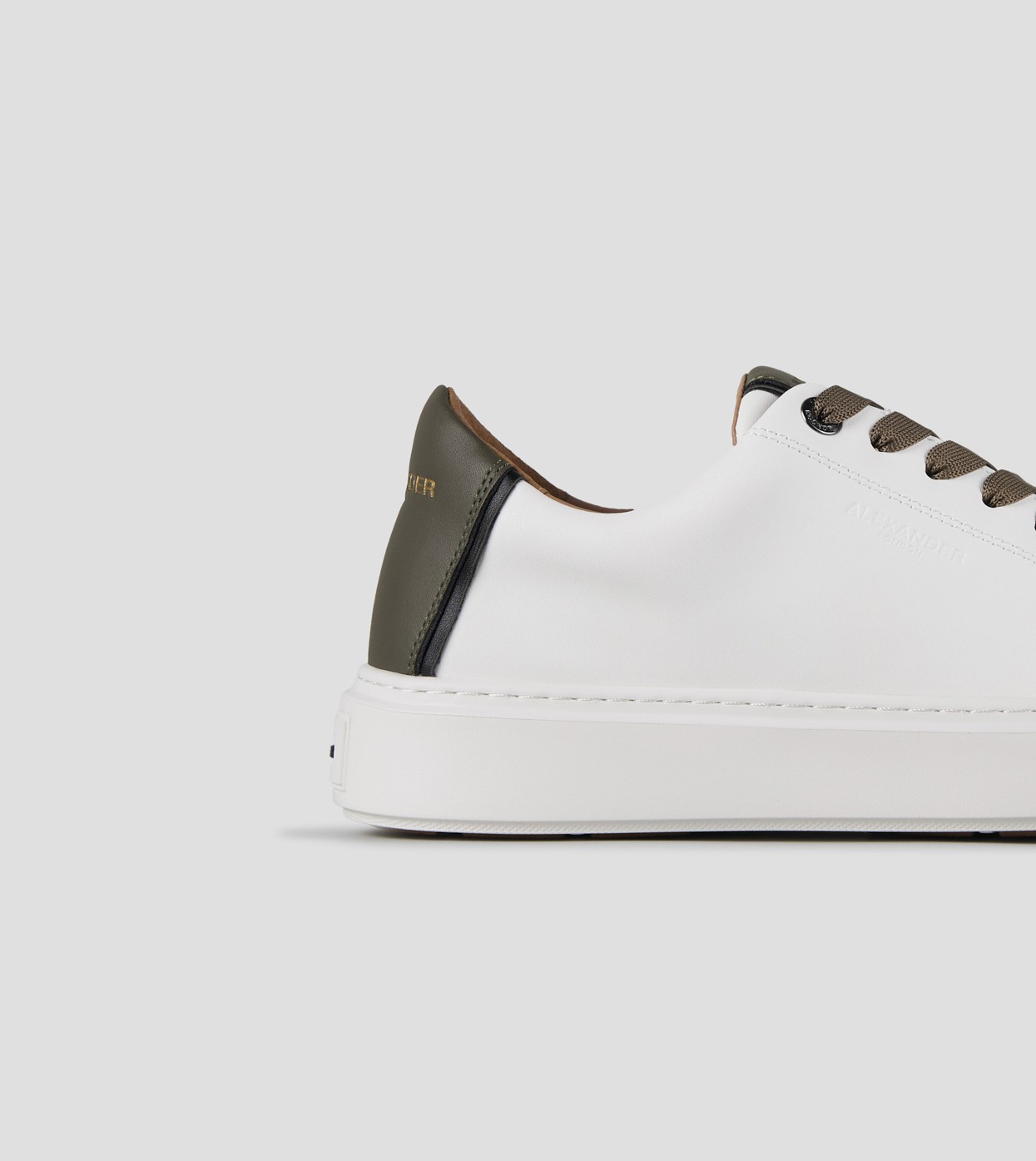 Ispirata allo stile dinamico e sofisticato della capitale britannica, London è la sneaker firmata Alexander London che unisce design contemporaneo e comfort quotidiano. Realizzata con materiali premium e finiture curate nei minimi dettagli, London è pensata per chi vive la città con stile, tra incontri di lavoro e momenti di relax. Un classico urbano rivisitato, perfetto per distinguersi con discrezione, in questa variante in morbida pelle bianca e tallone verde militare.
