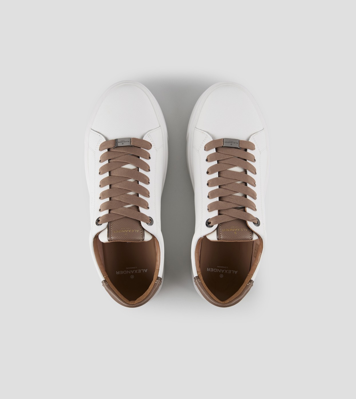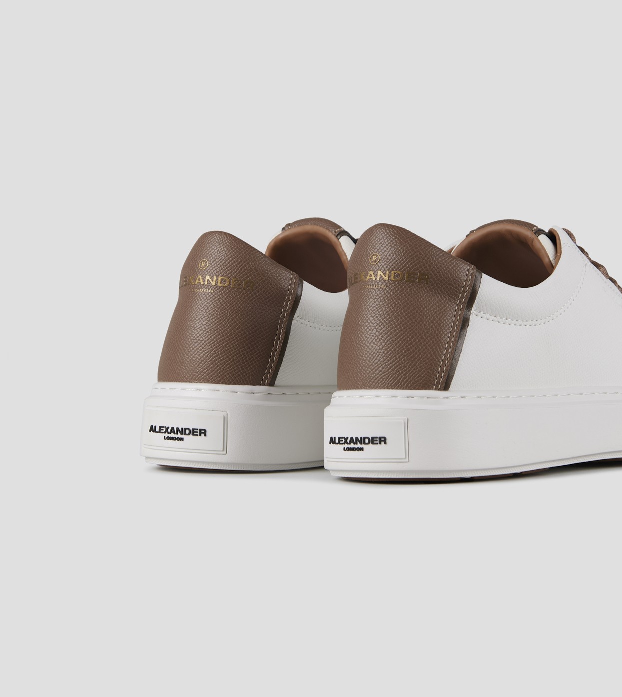 Ispirata allo stile dinamico e sofisticato della capitale britannica, London è la sneaker firmata Alexander London che unisce design contemporaneo e comfort quotidiano. Realizzata con materiali premium e finiture curate nei minimi dettagli, London è pensata per chi vive la città con stile, tra incontri di lavoro e momenti di relax. Un classico urbano rivisitato, perfetto per distinguersi con discrezione, in questa variante in pelle palmellata bianca con tallone marrone chiaro.