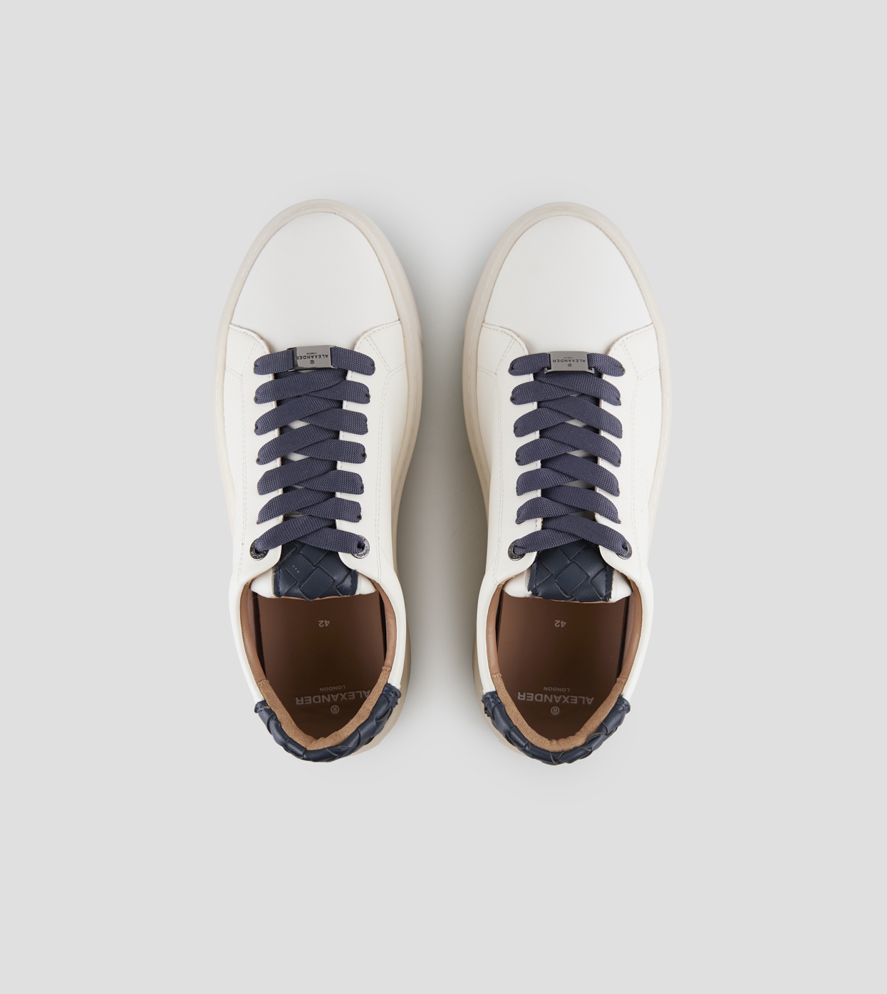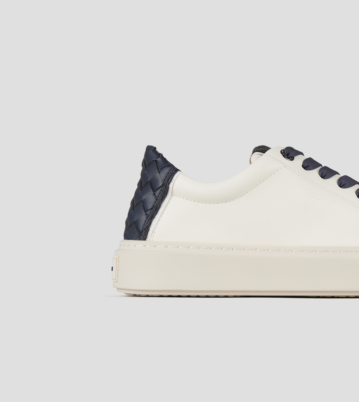 London Uomo in pelle bianca e tallone in pelle intrecciata blu