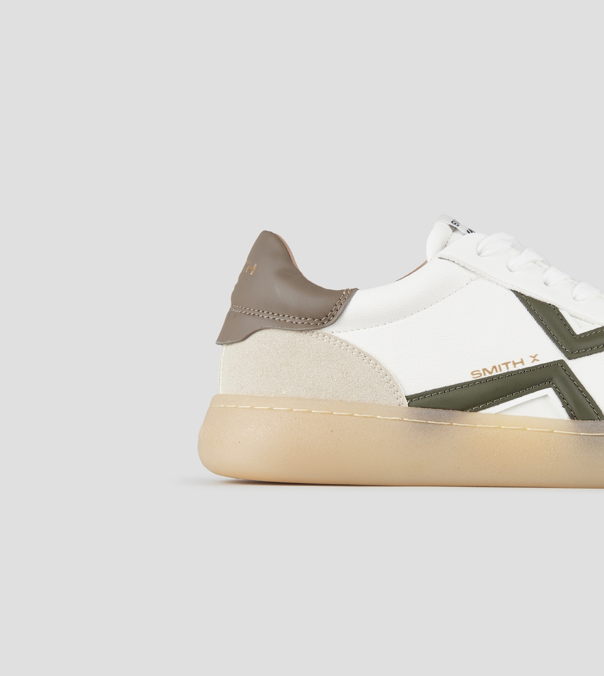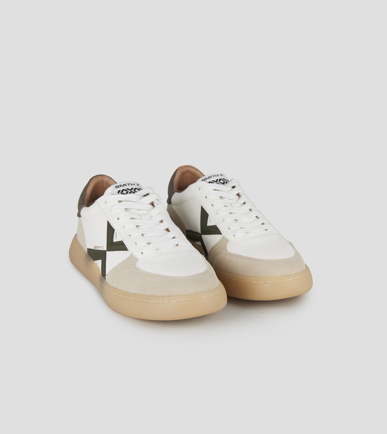 Ocean Uomo in bianco con inserti in suede, logo e tallone verde militare
