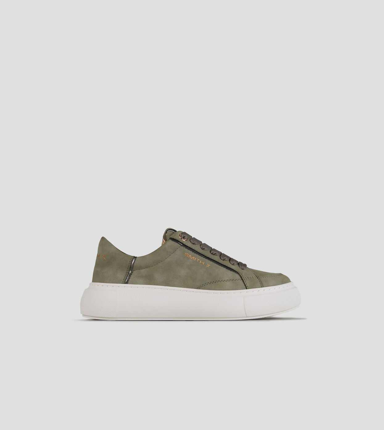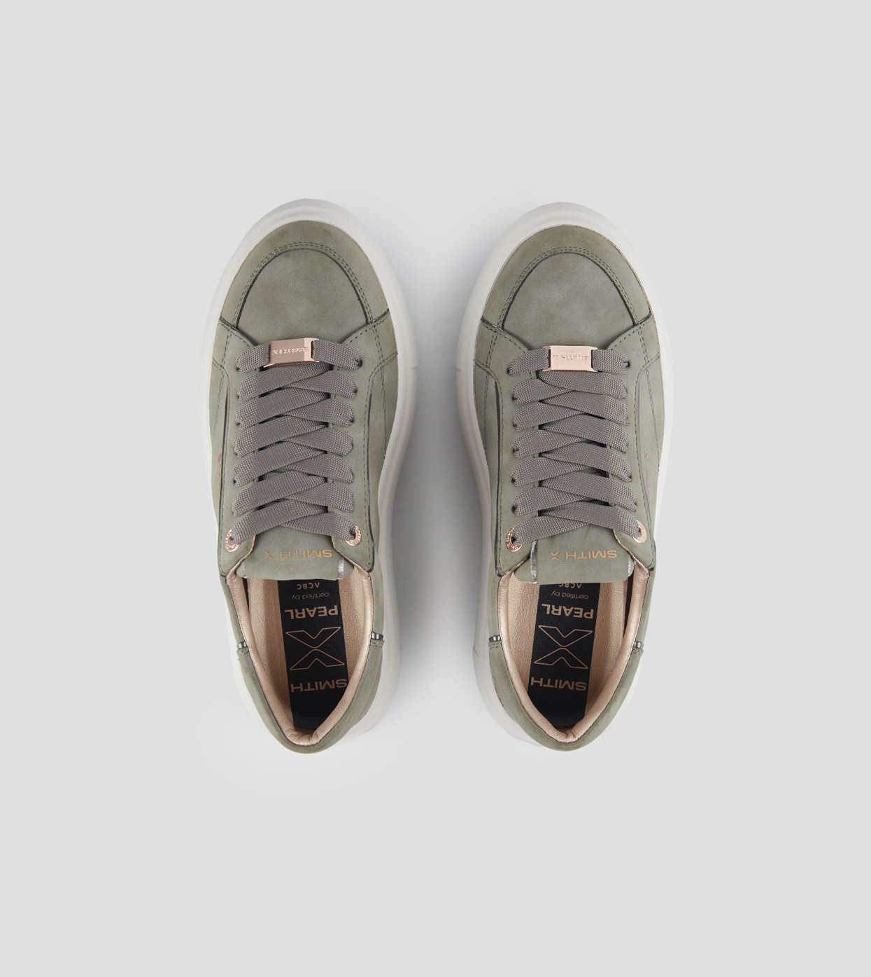 Linee pulite, volumi bilanciati e un tocco di eleganza informale: Pearl è la sneaker pensata per chi ama distinguersi con semplicità. La tomaia dai toni neutri e la suola dal design contemporaneo la rendono perfetta per accompagnare ogni look, dal casual al più ricercato. Comfort e stile si incontrano in un modello versatile, discreto e raffinato, in questa variante in verde militare con dettagli in laminato argento.