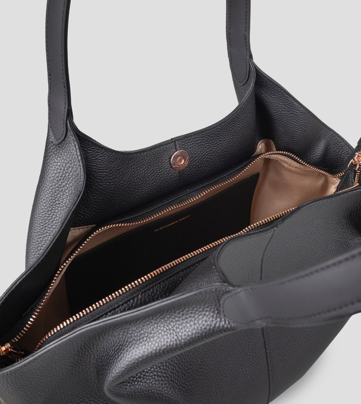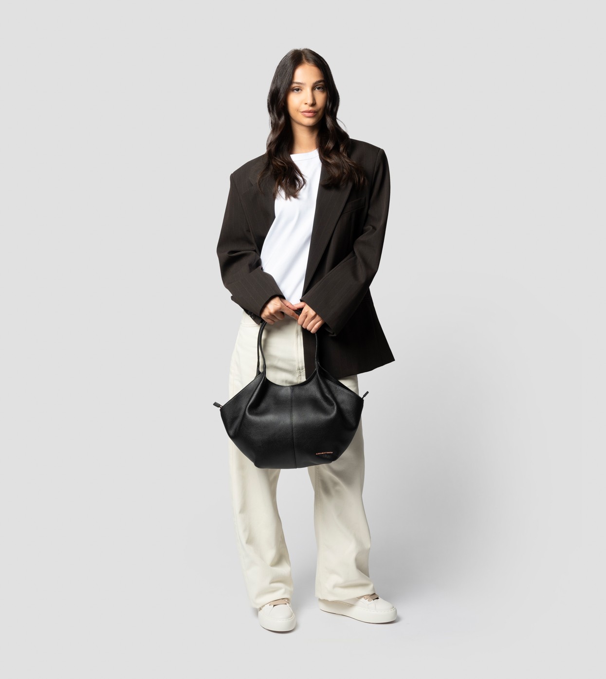 RACHEL è la shopper che interpreta l’equilibrio tra comfort e stile con forme fluide e proporzioni generose. Il design essenziale valorizza la sua silhouette ampia e accogliente, ideale per accompagnare ogni momento della giornata con eleganza rilassata.
