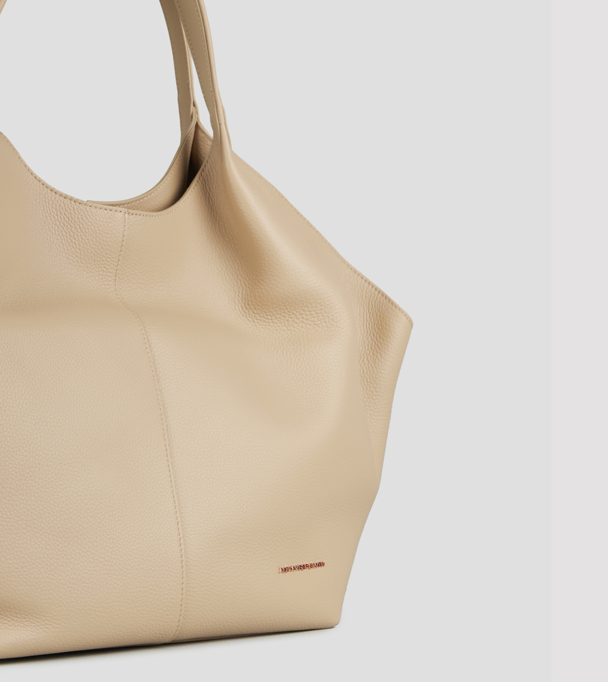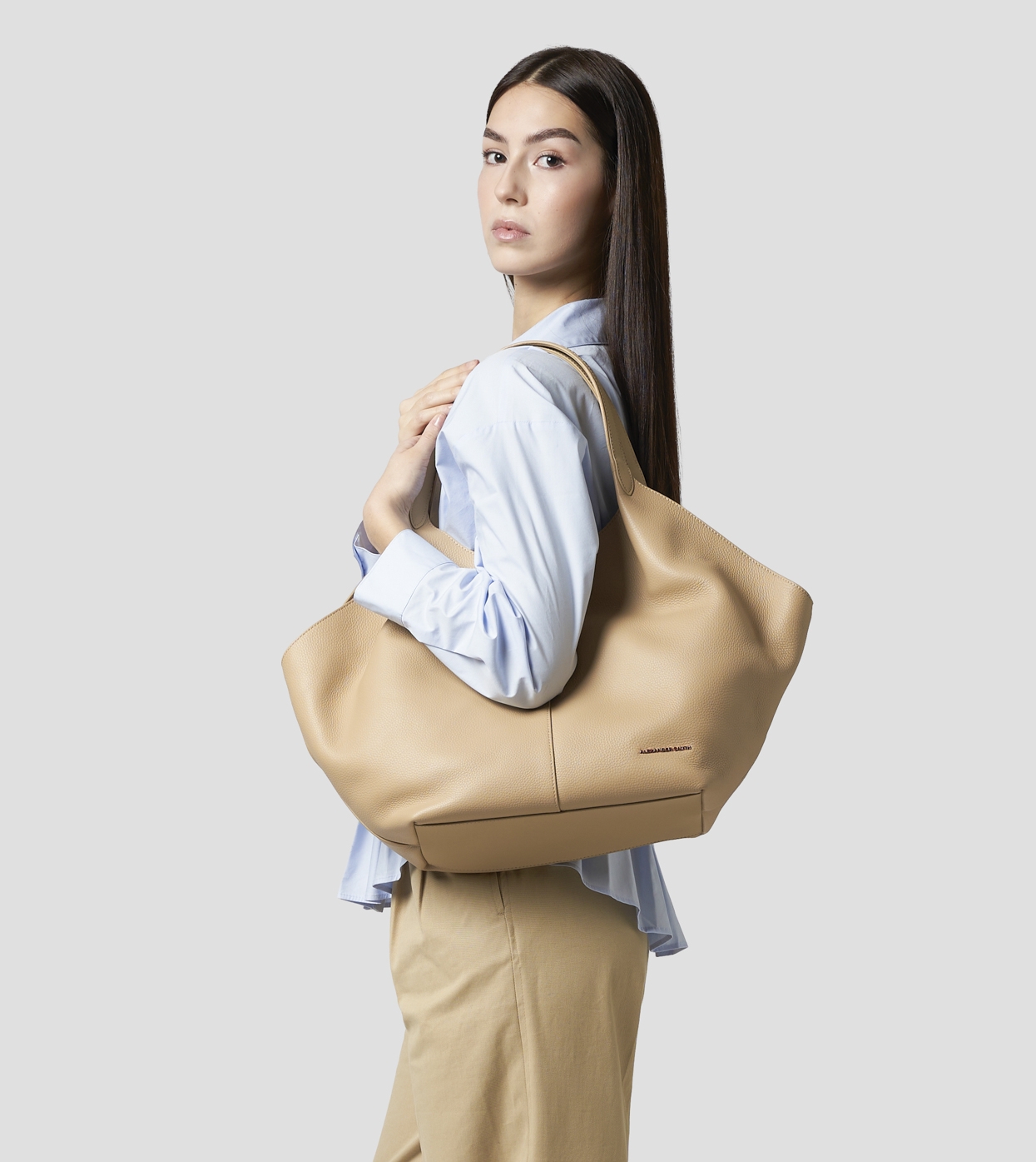 RACHEL è la shopper che interpreta l’equilibrio tra comfort e stile con forme fluide e proporzioni generose. Il design essenziale valorizza la sua silhouette ampia e accogliente, ideale per accompagnare ogni momento della giornata con eleganza rilassata.