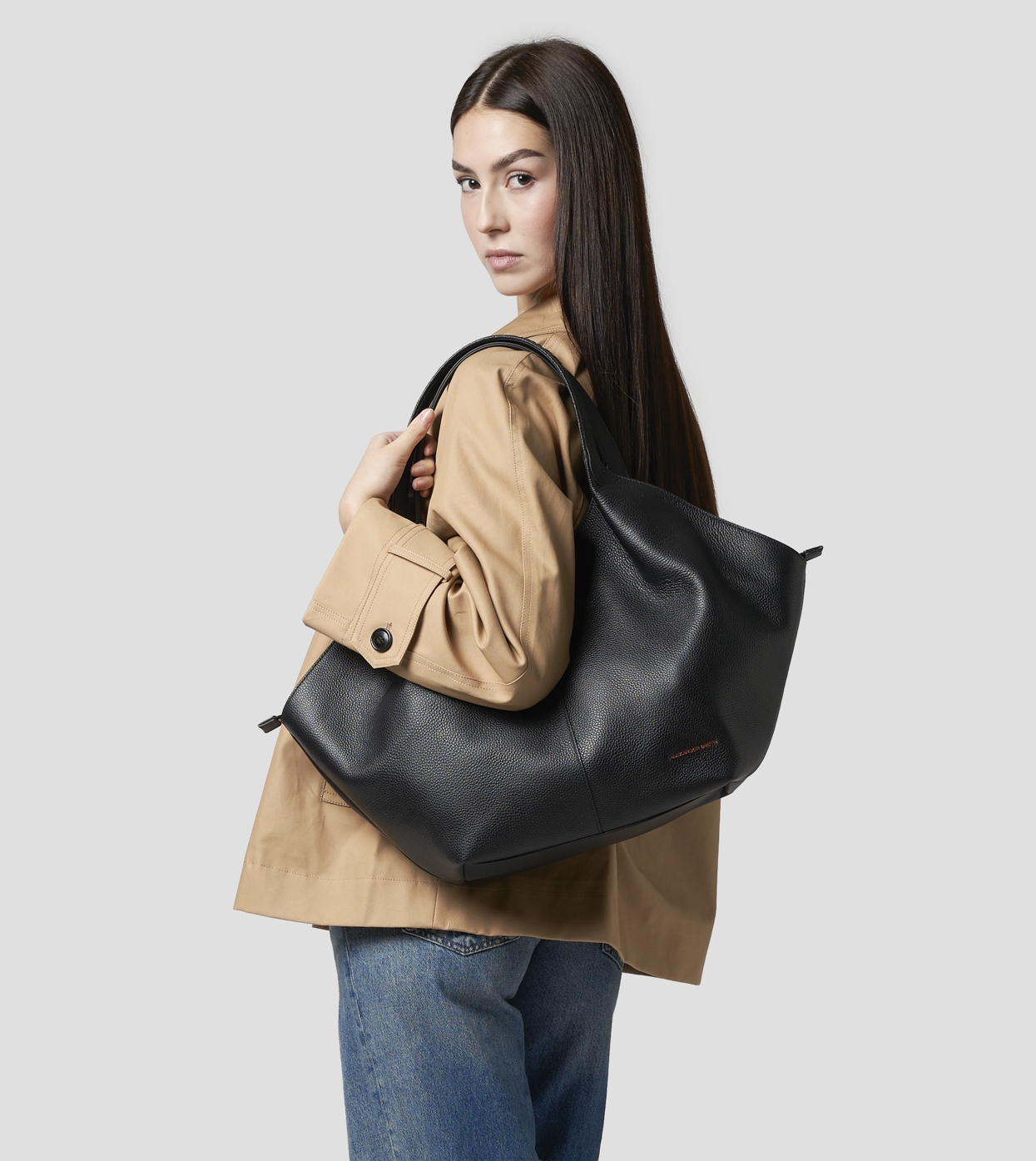 RACHEL è la shopper che interpreta l’equilibrio tra comfort e stile con forme fluide e proporzioni generose. Il design essenziale valorizza la sua silhouette ampia e accogliente, ideale per accompagnare ogni momento della giornata con eleganza rilassata.
