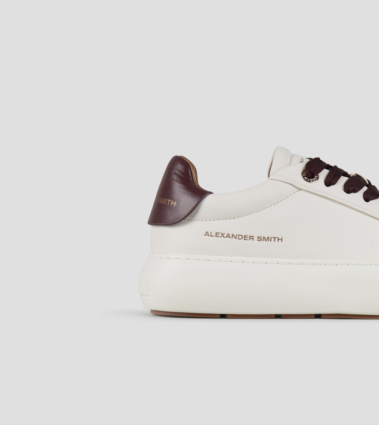 Ispirate al dinamismo e al fascino cosmopolita del celebre quartiere londinese, le nuove Alexander Smith SOHO incarnano l'essenza dello stile contemporaneo. Realizzate in morbida pelle, queste scarpe offrono un comfort straordinario e una leggerezza impareggiabile, ideali per chi ama vivere ogni giornata con eleganza e disinvoltura. Il design moderno e sofisticato rende le SOHO il compagno perfetto per completare qualsiasi outfit, dal casual chic al formale raffinato, in questa variante in pelle liscia bianca e dettagli bordeaux.