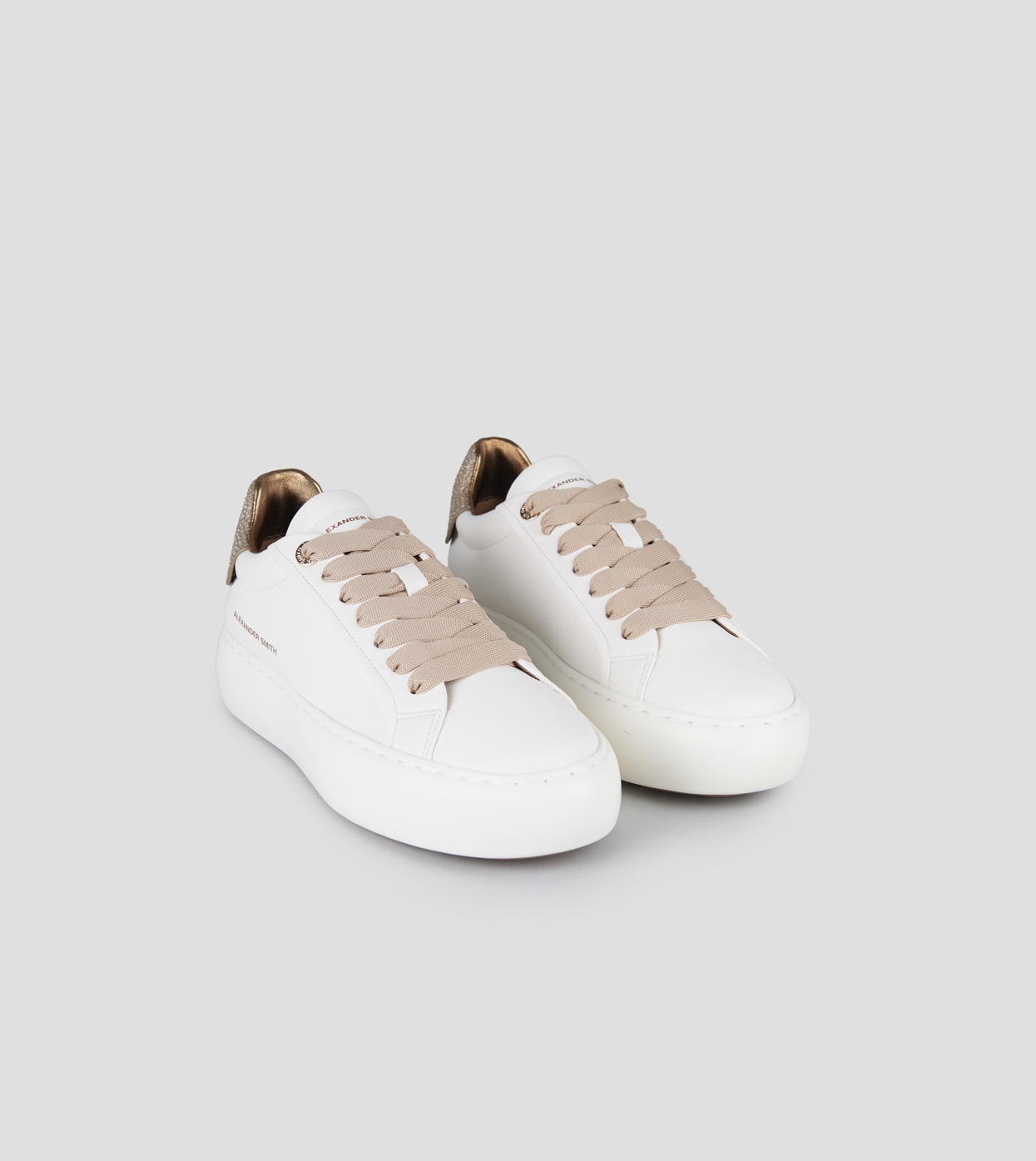 Soho Donna in pelle bianca e tallone oro con glitter