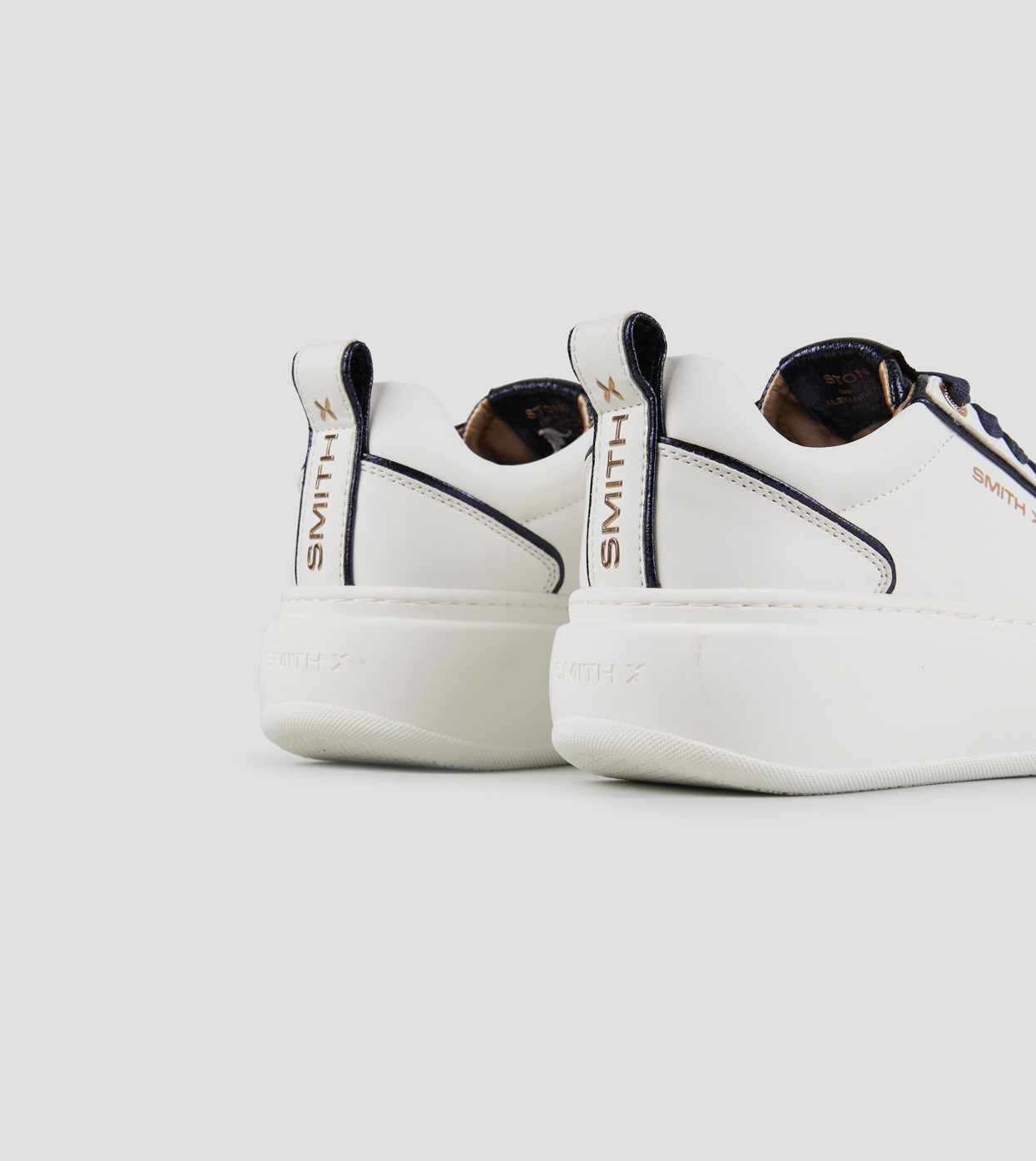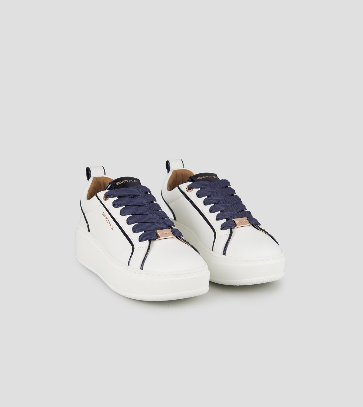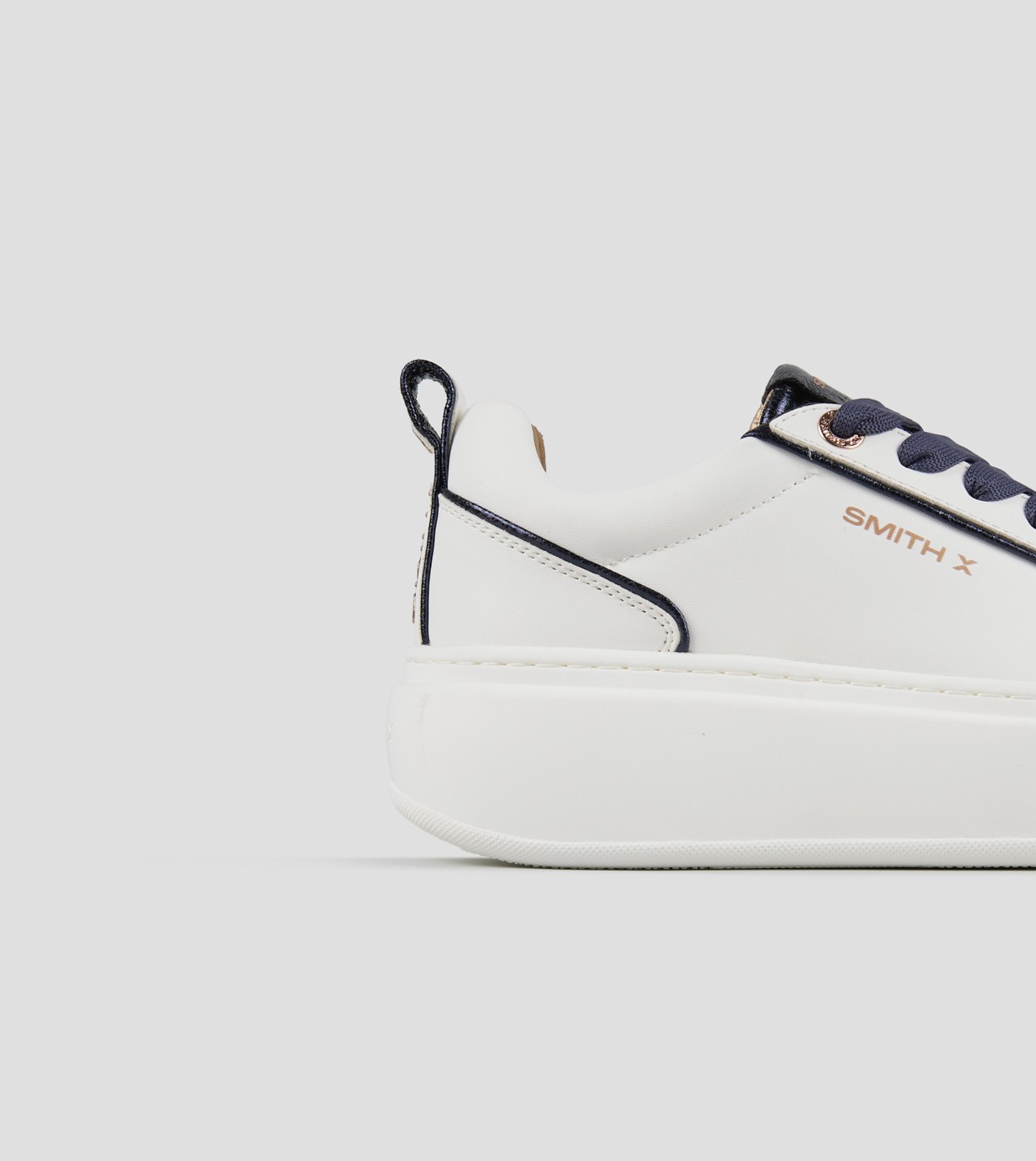 Pulita, lineare, intramontabile. STONE è la sneaker minimal firmata Smith X, che unisce spirito urbano e gusto raffinato in un design unisex pensato per durare nel tempo, in questa variante bianca con dettagli in laminato blu.