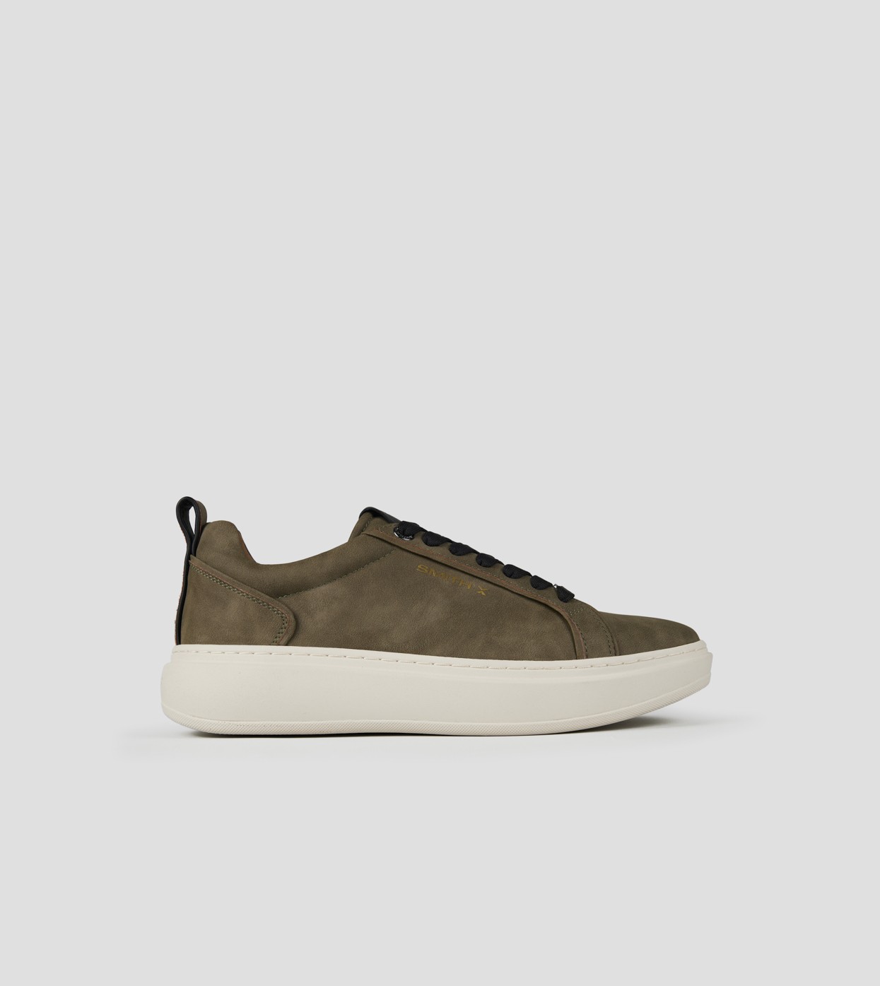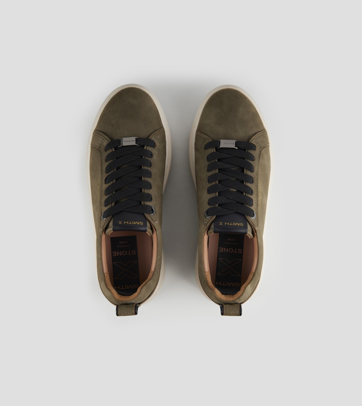 Pulita, lineare, intramontabile. STONE è la sneaker minimal firmata Smith X, che unisce spirito urbano e gusto raffinato in un design unisex pensato per durare nel tempo, in questa variante in suede verde militare con dettagli neri.
