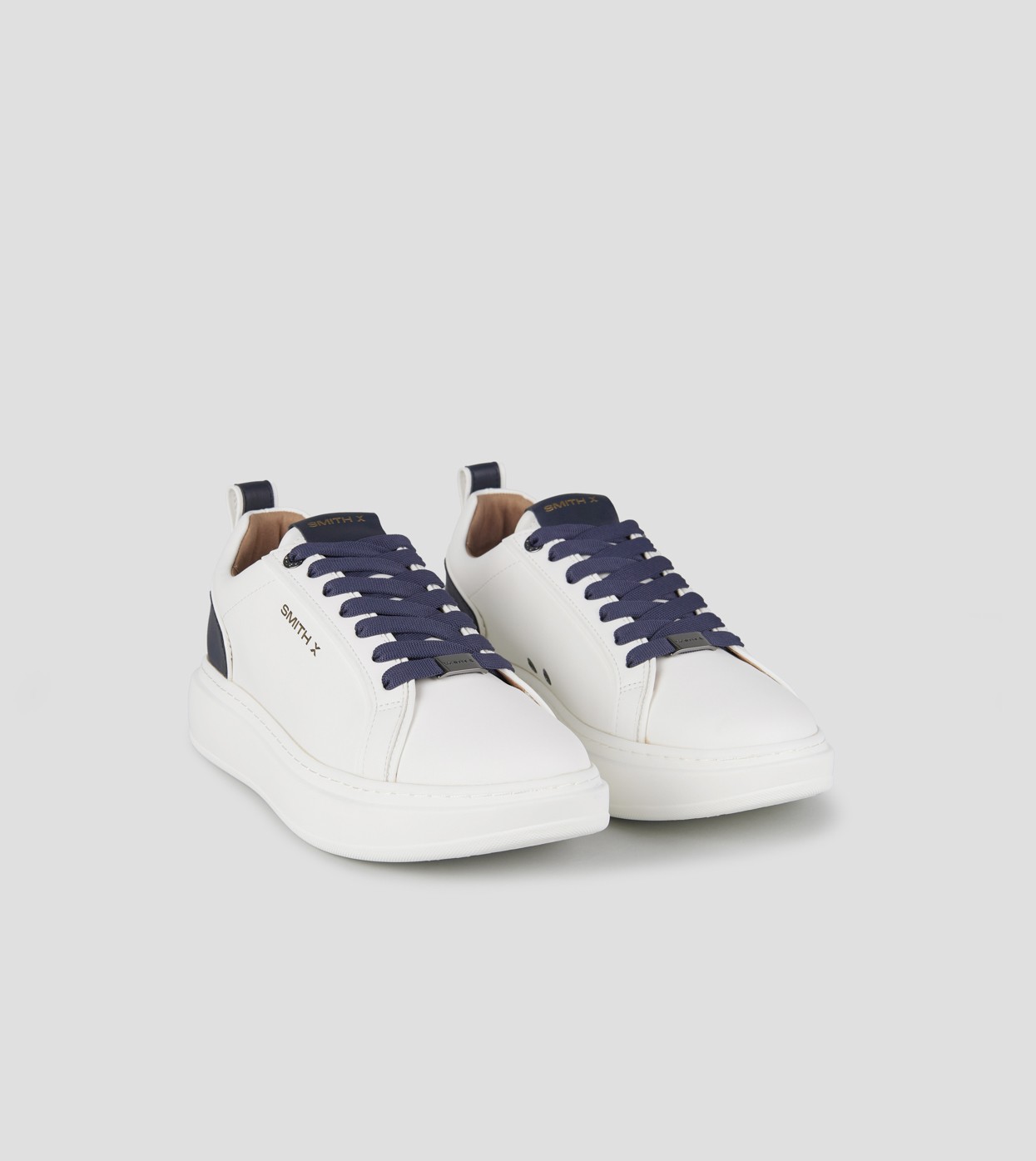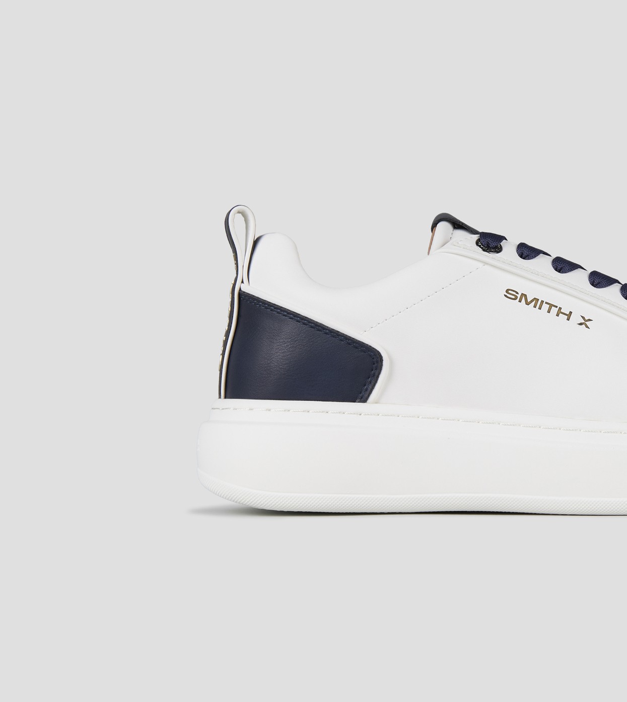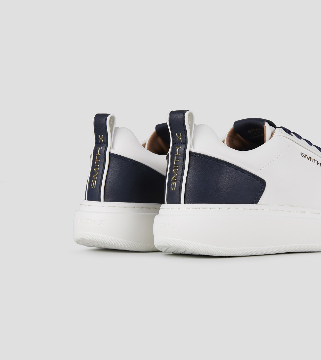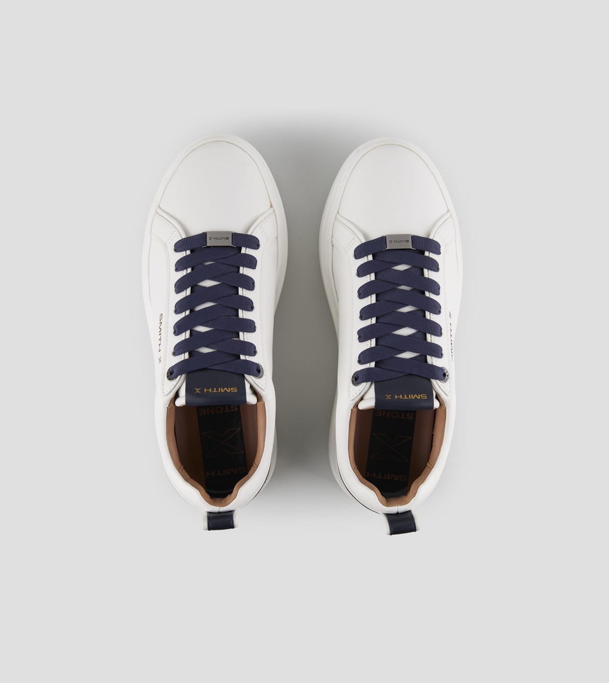 Pulita, lineare, intramontabile. STONE è la sneaker minimal firmata Smith X, che unisce spirito urbano e gusto raffinato in un design unisex pensato per durare nel tempo, in questa variante bianca e tallone blu.