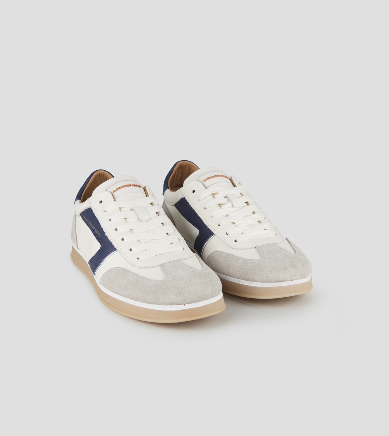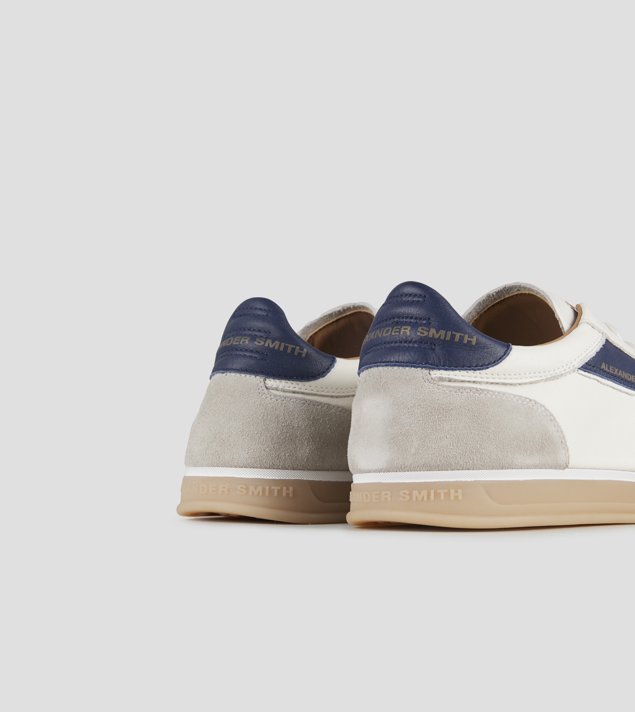 Thames Uomo in pelle bianca, camoscio grigio e logo blu