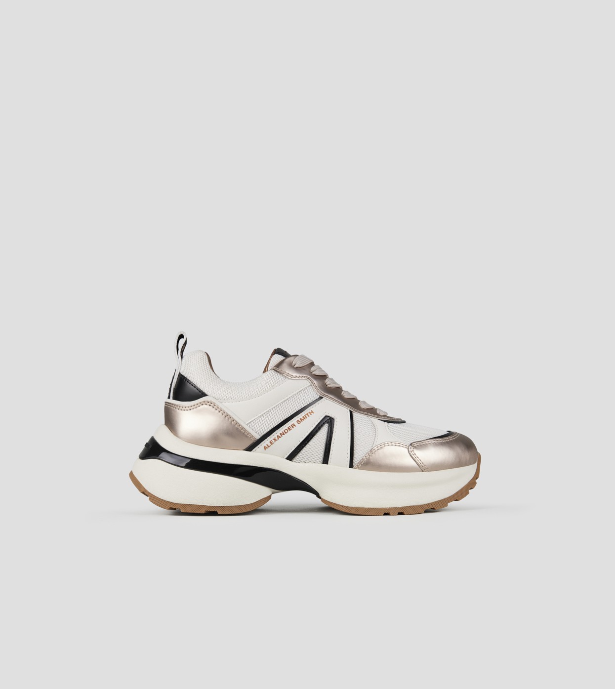 Il nuovo modello Victoria di Alexander Smith nasce per accompagnare ogni passo con grinta ed eleganza. Linee decise, dettagli metallici e una suola bold definiscono una sneaker dallo spirito contemporaneo, perfetta per chi vuole distinguersi. Victoria è l’equilibrio perfetto tra performance urbana e ricercatezza estetica, in questa variante in pelle e mesh platino, e dettagli specchio.
