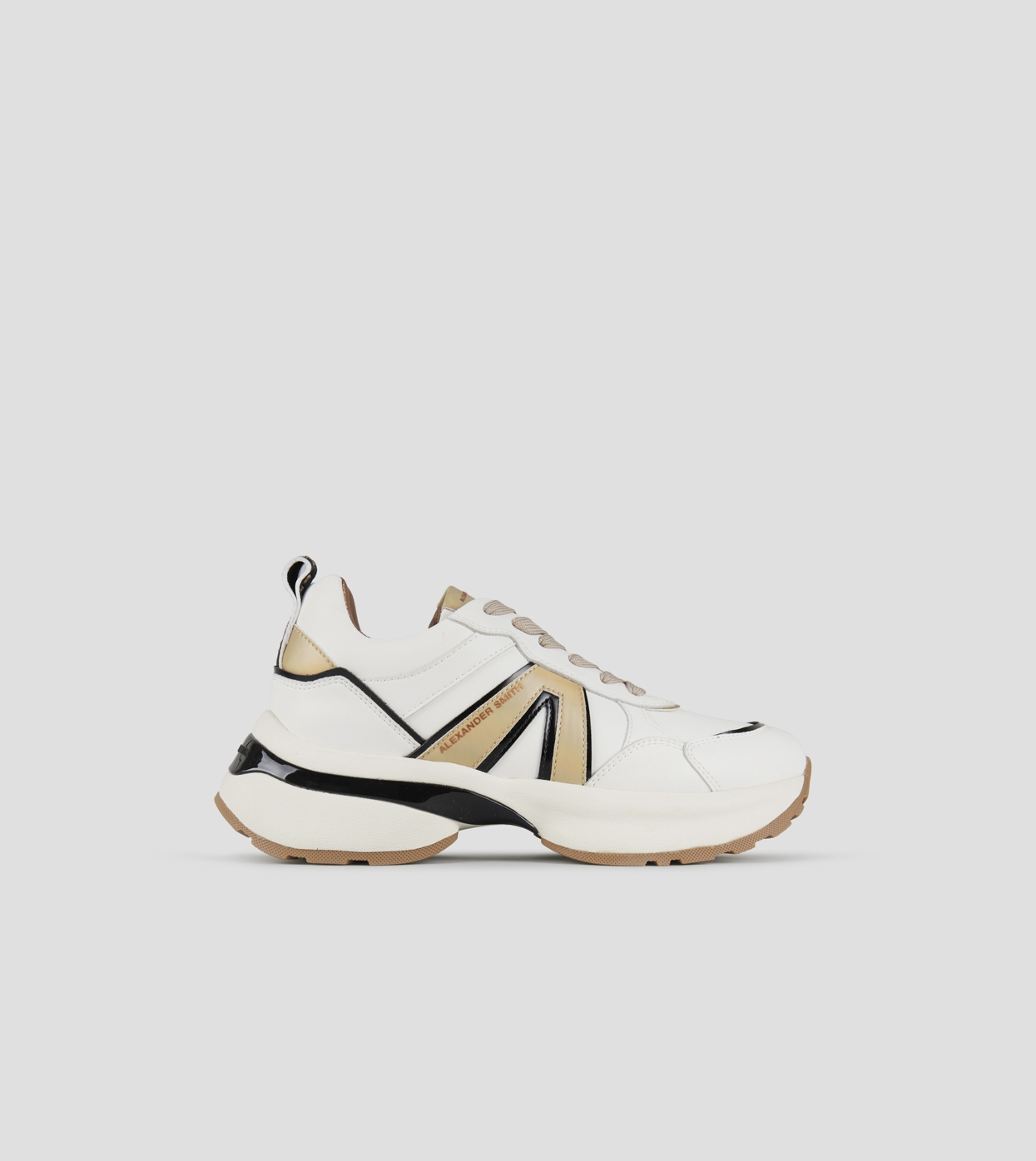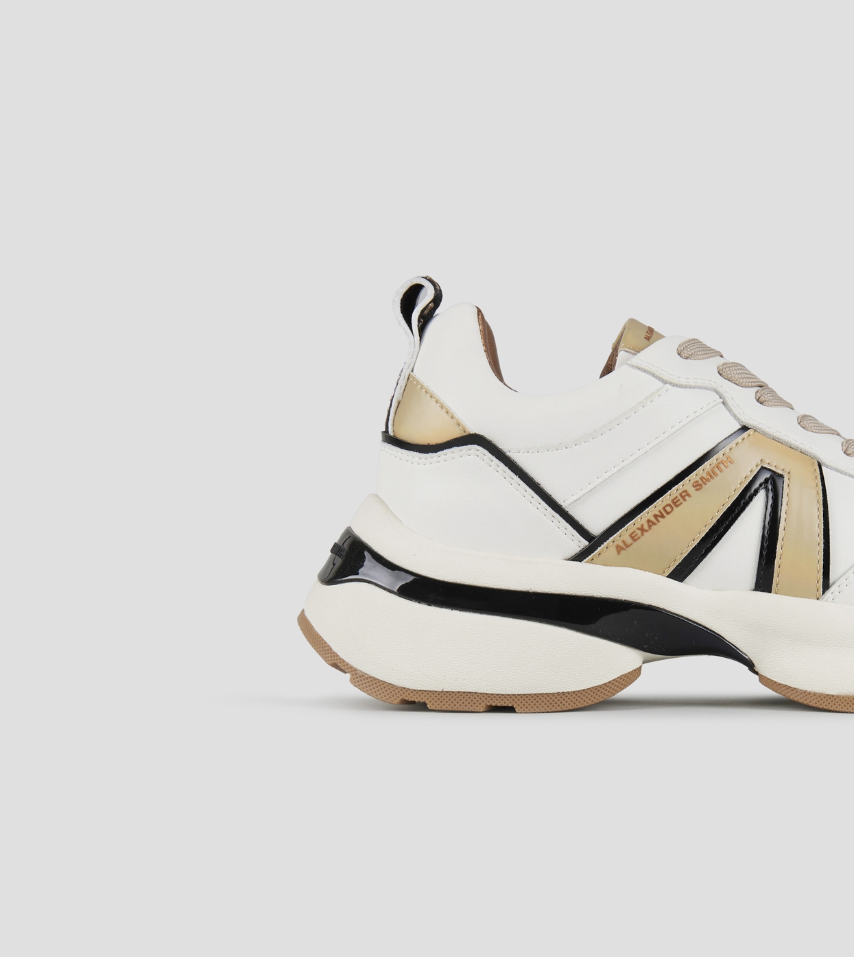 Il nuovo modello Victoria di Alexander Smith nasce per accompagnare ogni passo con grinta ed eleganza. Linee decise, dettagli metallici e una suola bold definiscono una sneaker dallo spirito contemporaneo, perfetta per chi vuole distinguersi. Victoria è l’equilibrio perfetto tra performance urbana e ricercatezza estetica, in questa variante in pelle bianca con logo laterale e dettagli dorati.