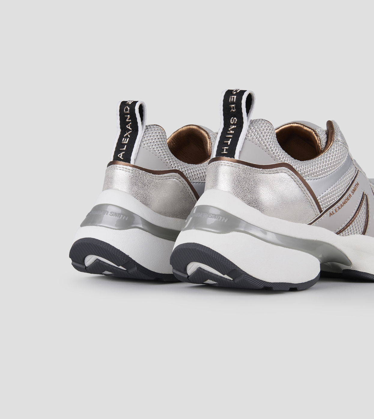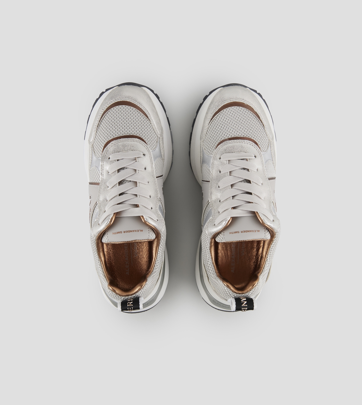 Il nuovo modello Victoria di Alexander Smith nasce per accompagnare ogni passo con grinta ed eleganza. Linee decise, dettagli metallici e una suola bold definiscono una sneaker dallo spirito contemporaneo, perfetta per chi vuole distinguersi. Victoria è l’equilibrio perfetto tra performance urbana e ricercatezza estetica, in questa variante in tessuto mesh e laminato polveroso grigio.