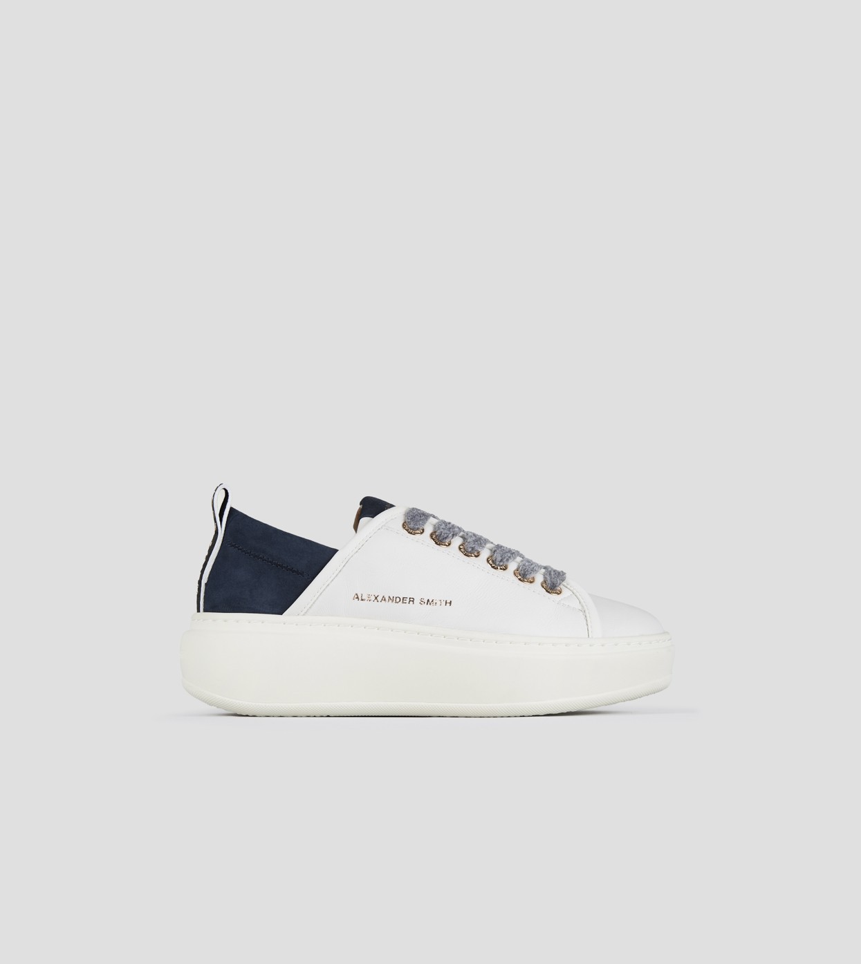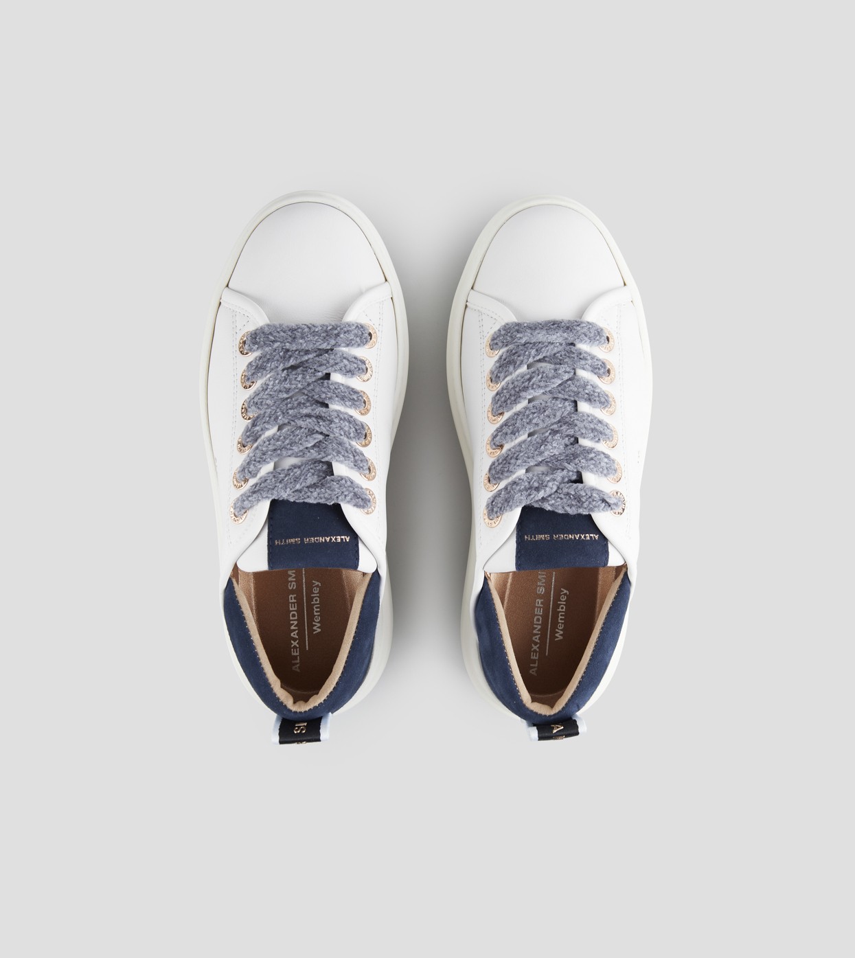 Wembley Alta Donna in pelle bianca e tallone in suede blu
