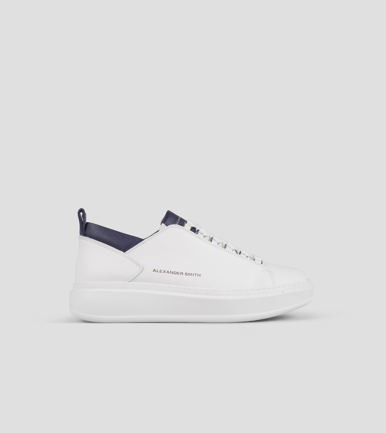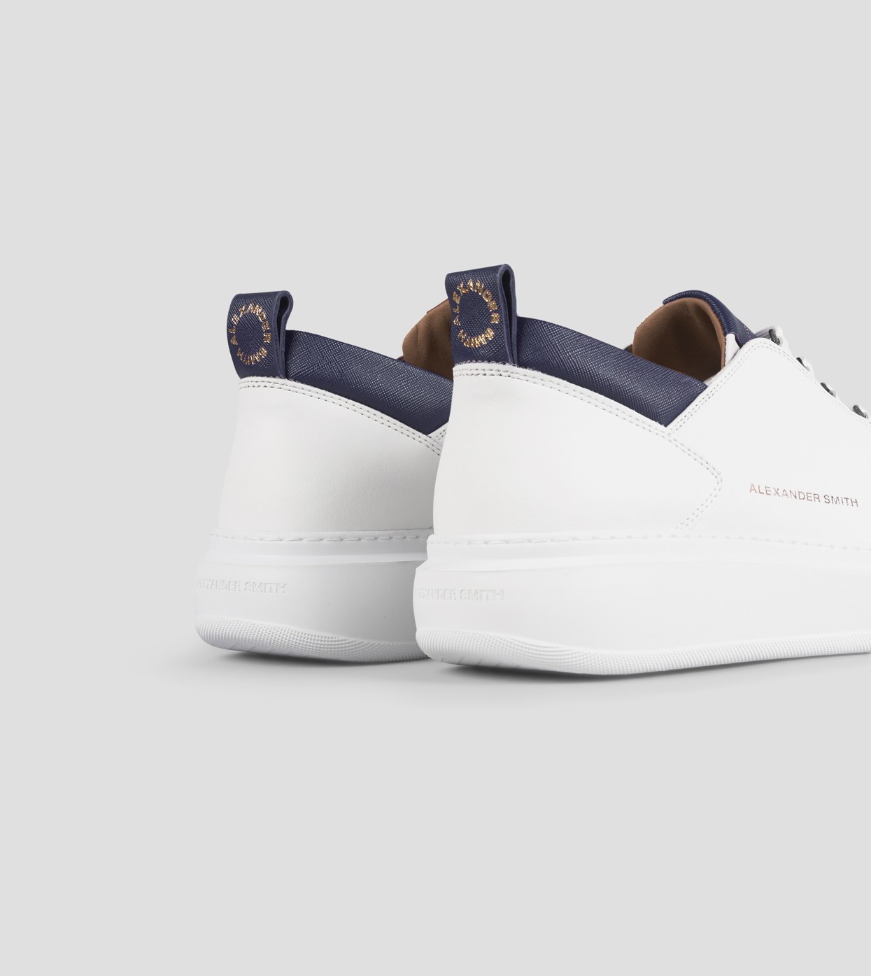 Wembley Uomo in pelle bianca e dettagli in pelle saffiano blu