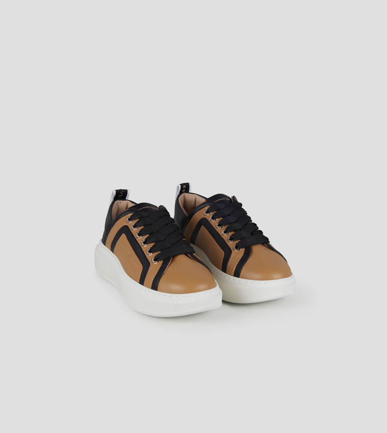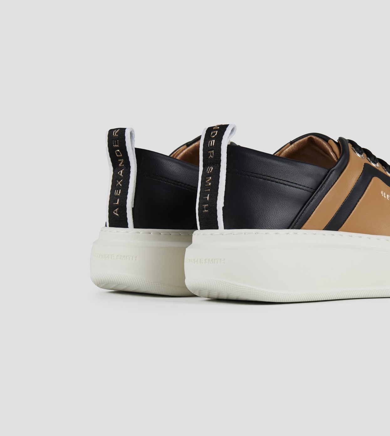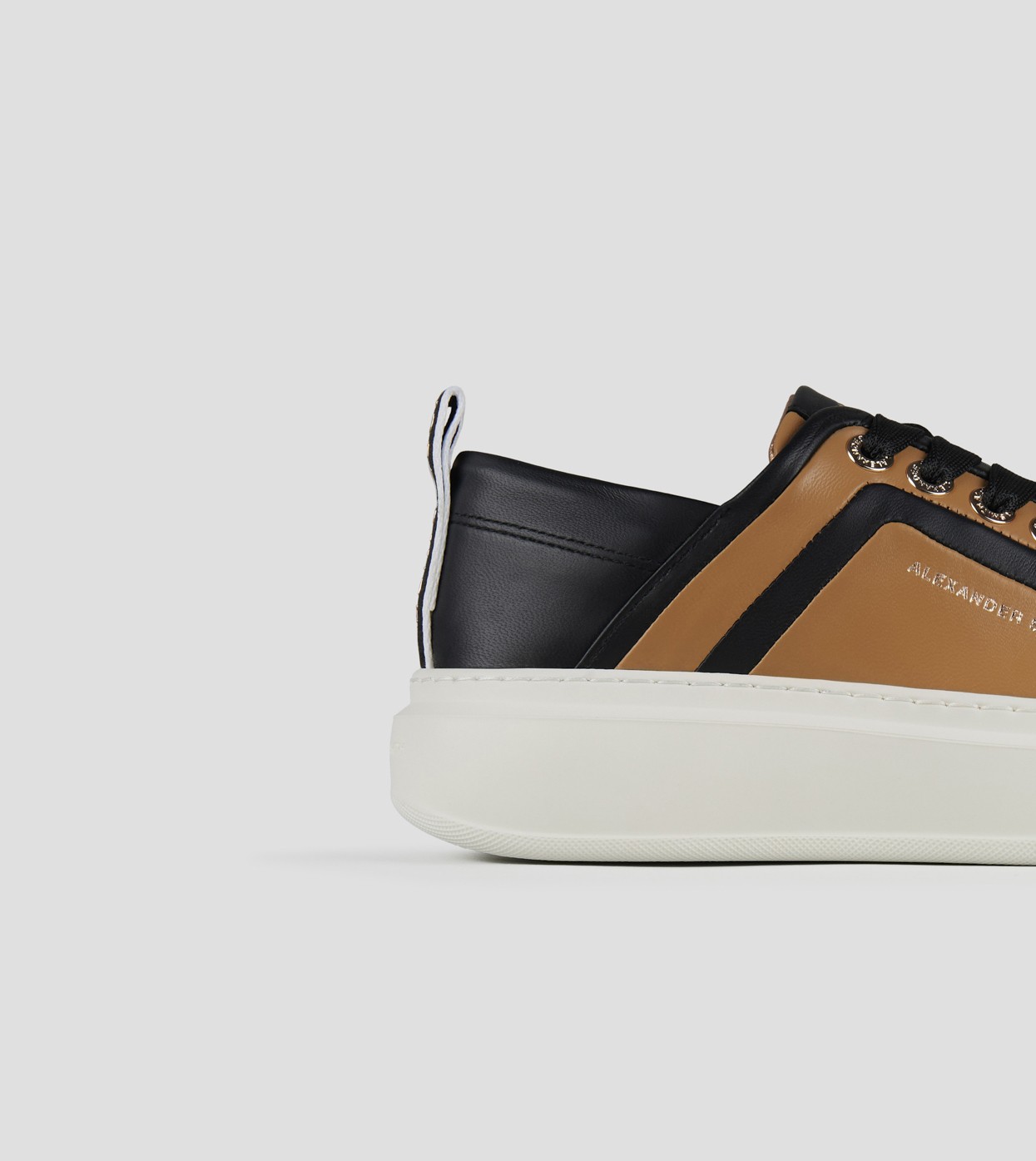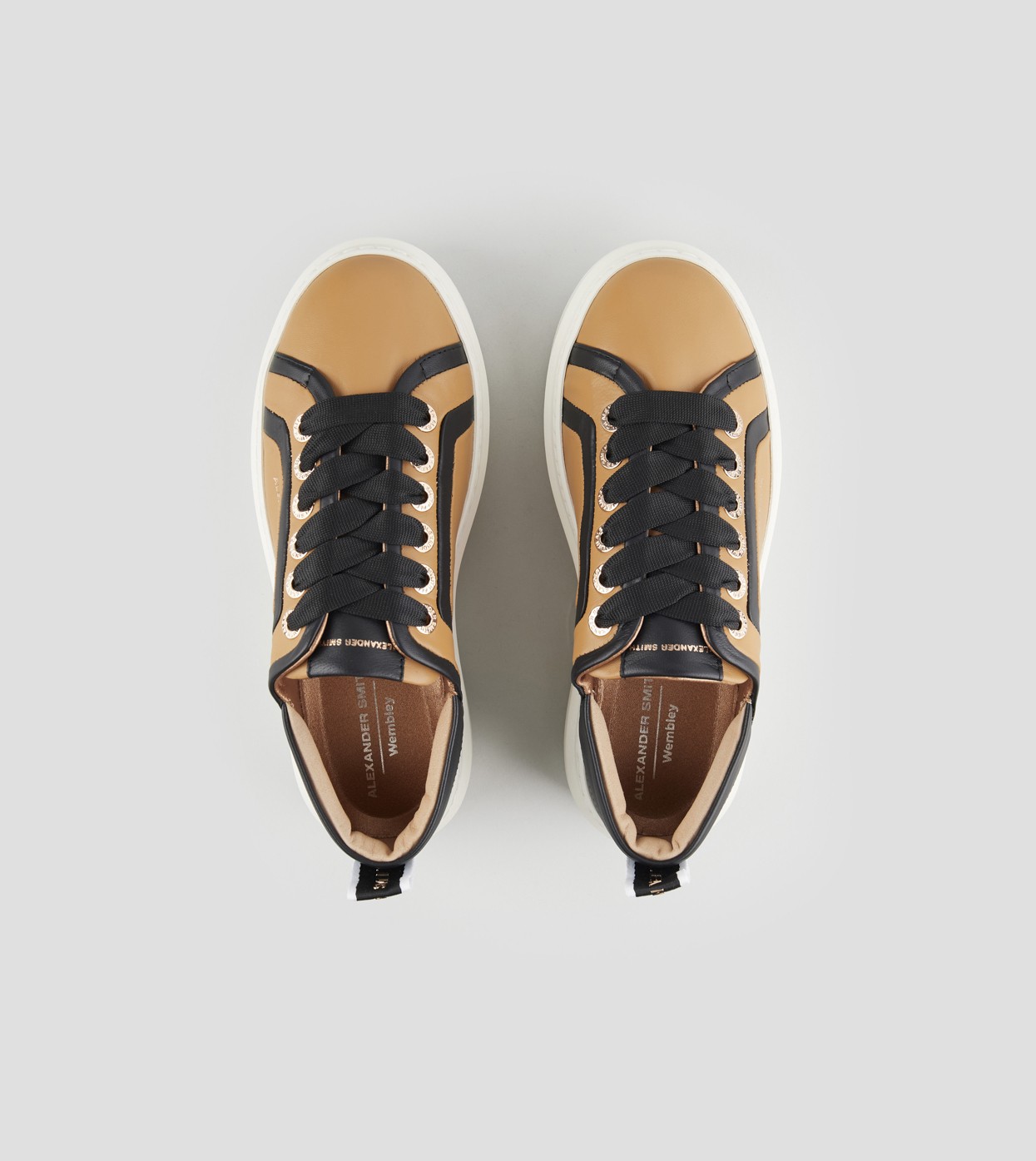 Il riferimento al famoso stadio inglese è chiaro: sportività ed eleganza si fondono per dare vita a questo modello. Le Wembley rappresentano l’equilibrio tra comodità, stile e sobrietà, ai quali si aggiunge modernità grazie ai dettagli unici che fanno la differenza, in questa versione in pelle liscia color cammello con nervatura laterale e tallone neri.